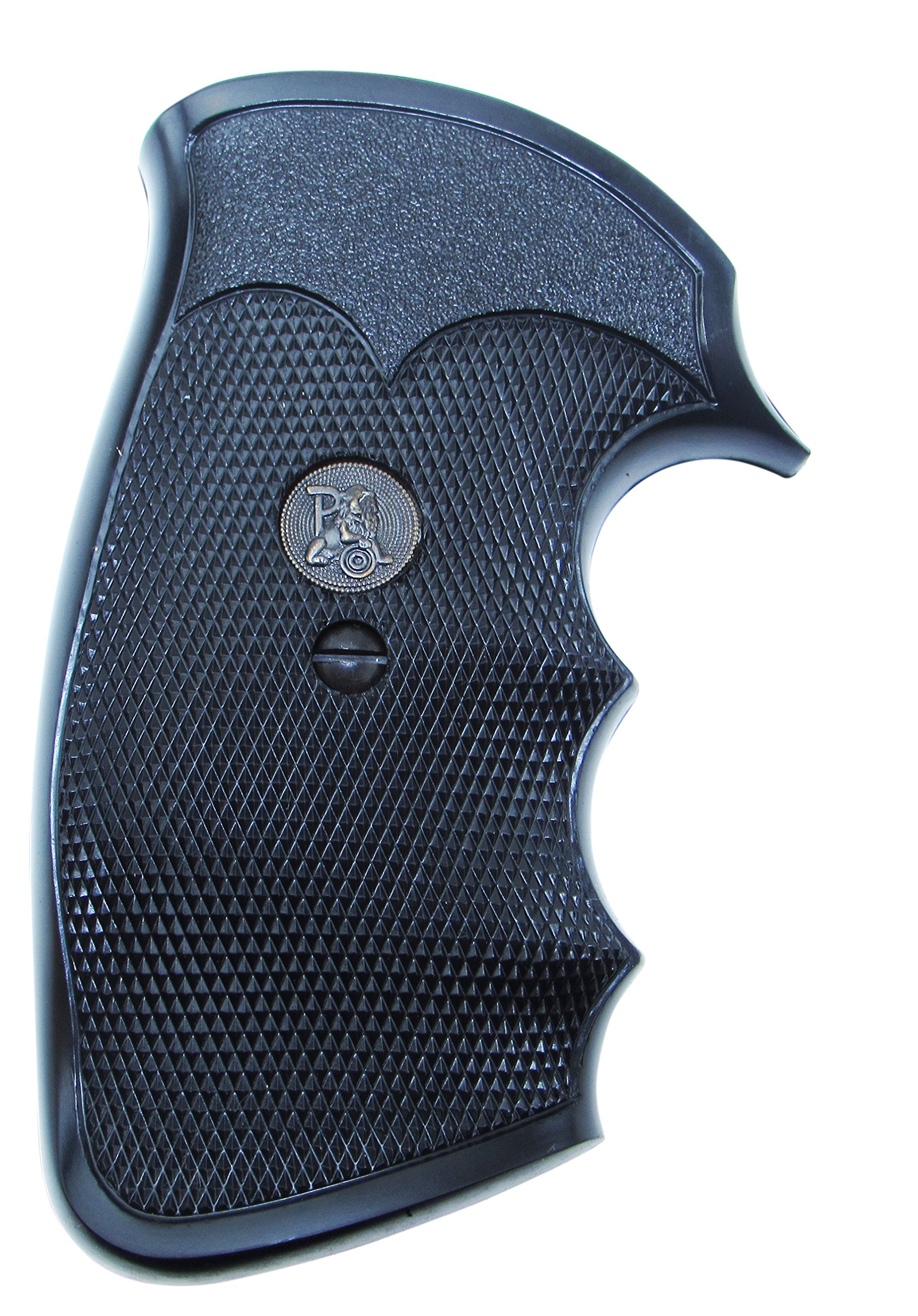 Pachmayr Gripper Grips for revolvers are made from a specially formulated rubber compound optimized for control and recoil absorption. The finger groove style is popular for combat shooting and hunting. A slight palm swell fills the hand but is not so large as to be uncomfortable. Gripper Grips are fully checkered for appearance as well as for control. These grips are designed for correct hand position and point very well. Features: - Checkering, finger grooves and palm swell - Covered back strap. #02528 Colt I Frame, Official Model Match, Python Official Police, Trooper (Pre 1970)