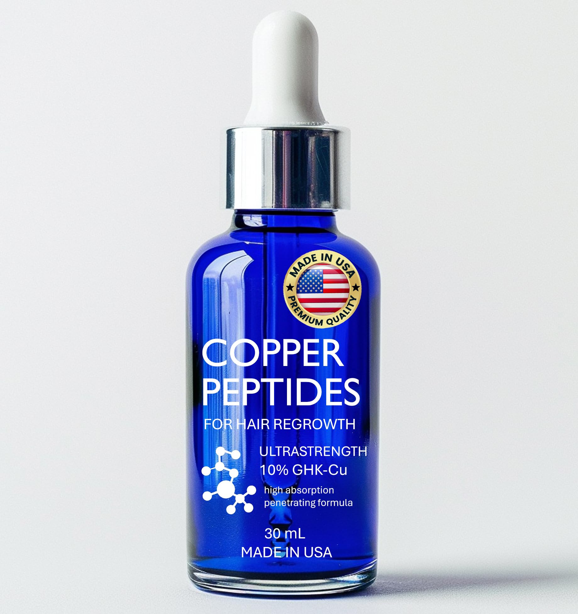 Formulated with highest quality true cobalt blue copper peptides for optimal hair rejuvenation and growth. Ready to use, no mixing required. Our formula contains two copper peptides, while most other formulas just contain one.