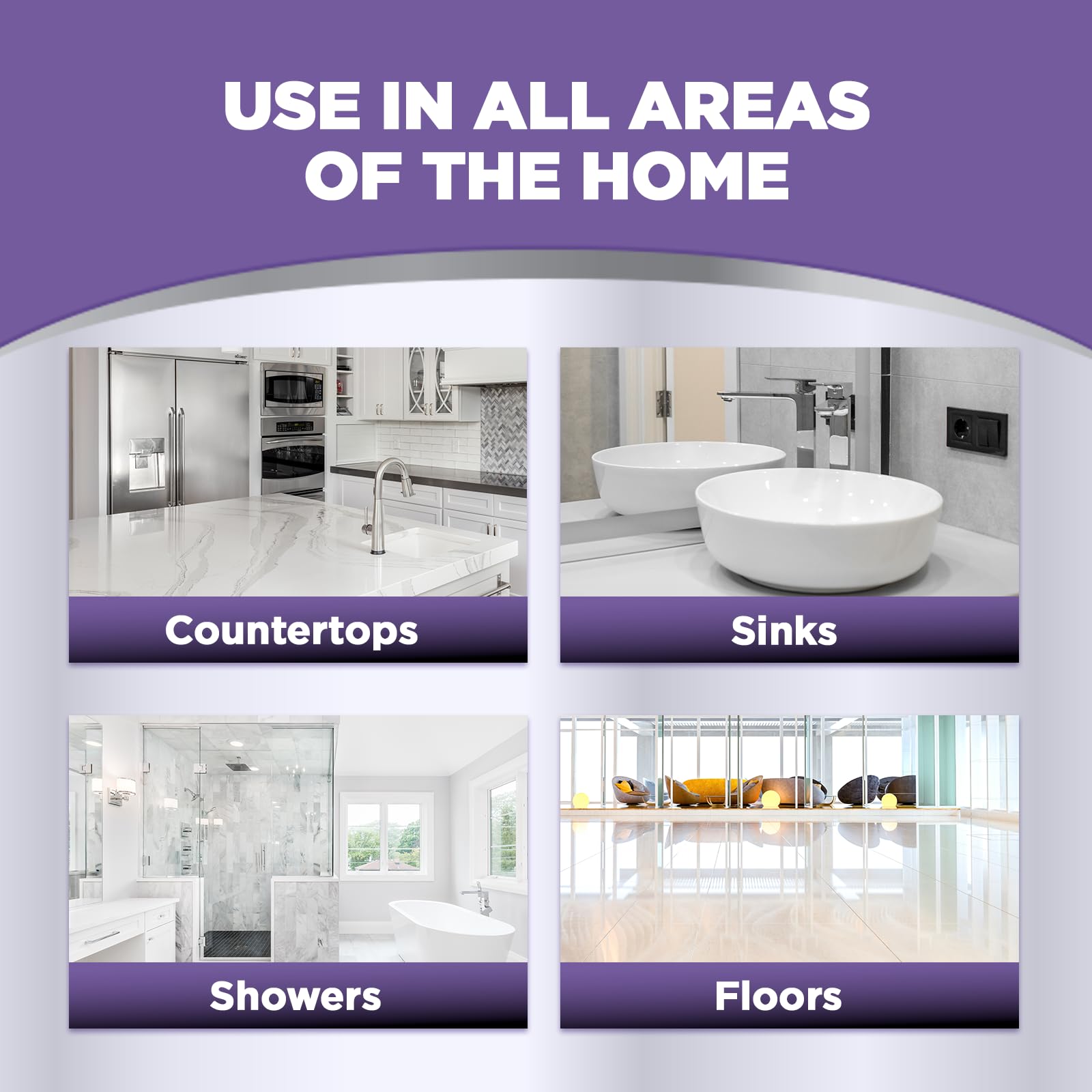FOR USE ON MULTIPLE SURFACES: These products are formulated for use on: Non-porous sealed surfaces including granite, quartz, quartzite, marble, slate and glazed tile. They can be used in the kitchen on countertops, backsplashes and in the bathroom on showers, tile and vanity tops