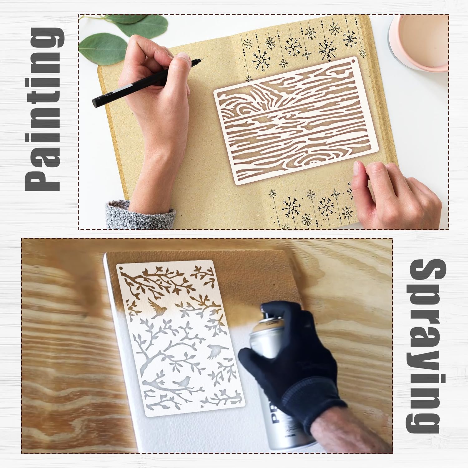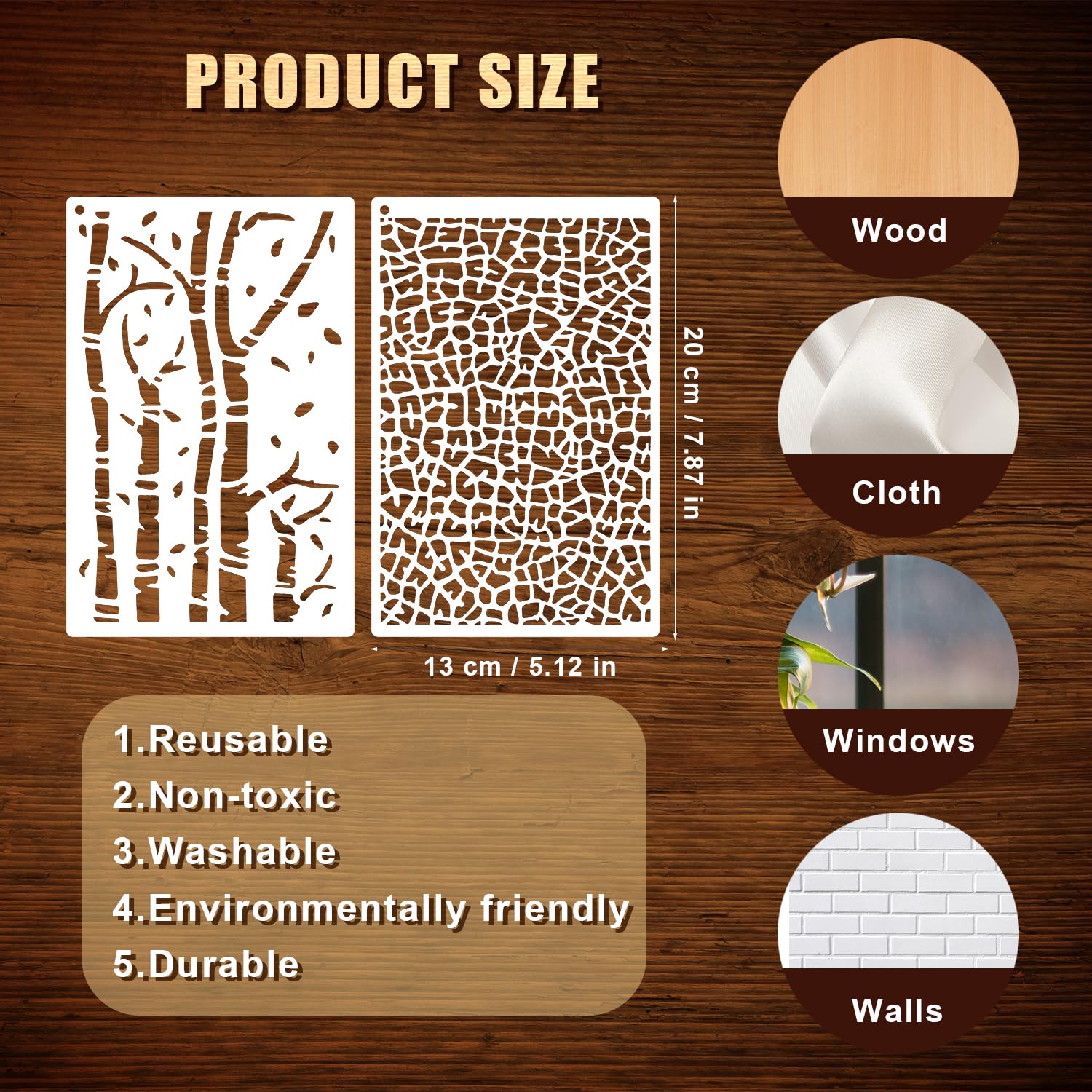 Beautiful Design: Our painting stencils are designed with a variety of beautiful patterns including bark textures, tree textures, birds on branches, abstract bricks and more, which can be chosen to suit your preference, or to match the background style.
