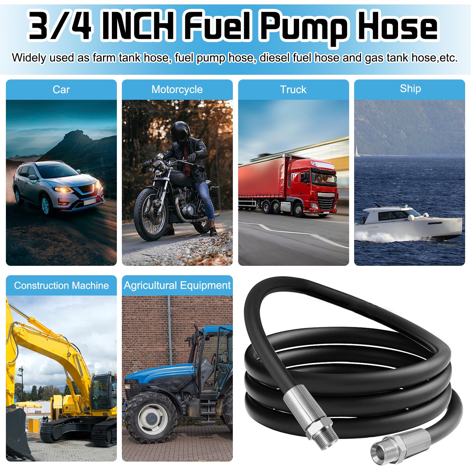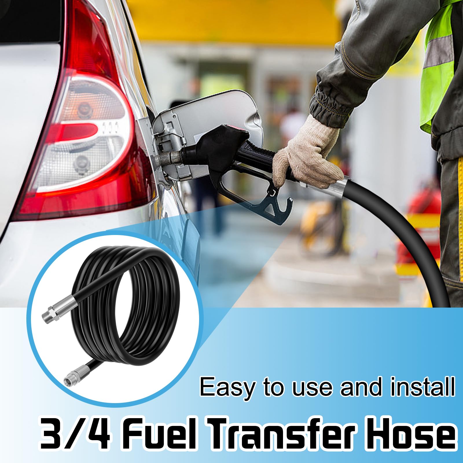 【Compatibility and Safety】The 3/4" NPT threading ensures compatibility with a wide range of fuel transfer equipment, such as pumps, nozzles, and tanks. This hose is designed to provide a secure and leak-free connection, ensuring safe and efficient fuel transfer without the risk of spills or leaks.