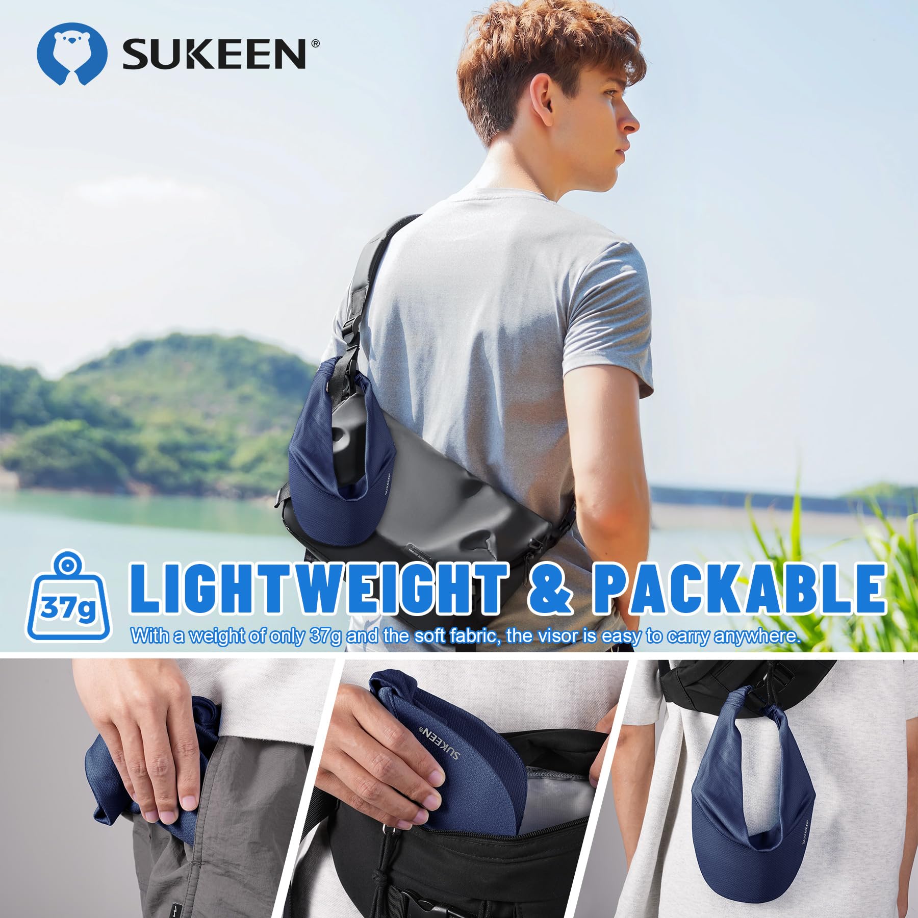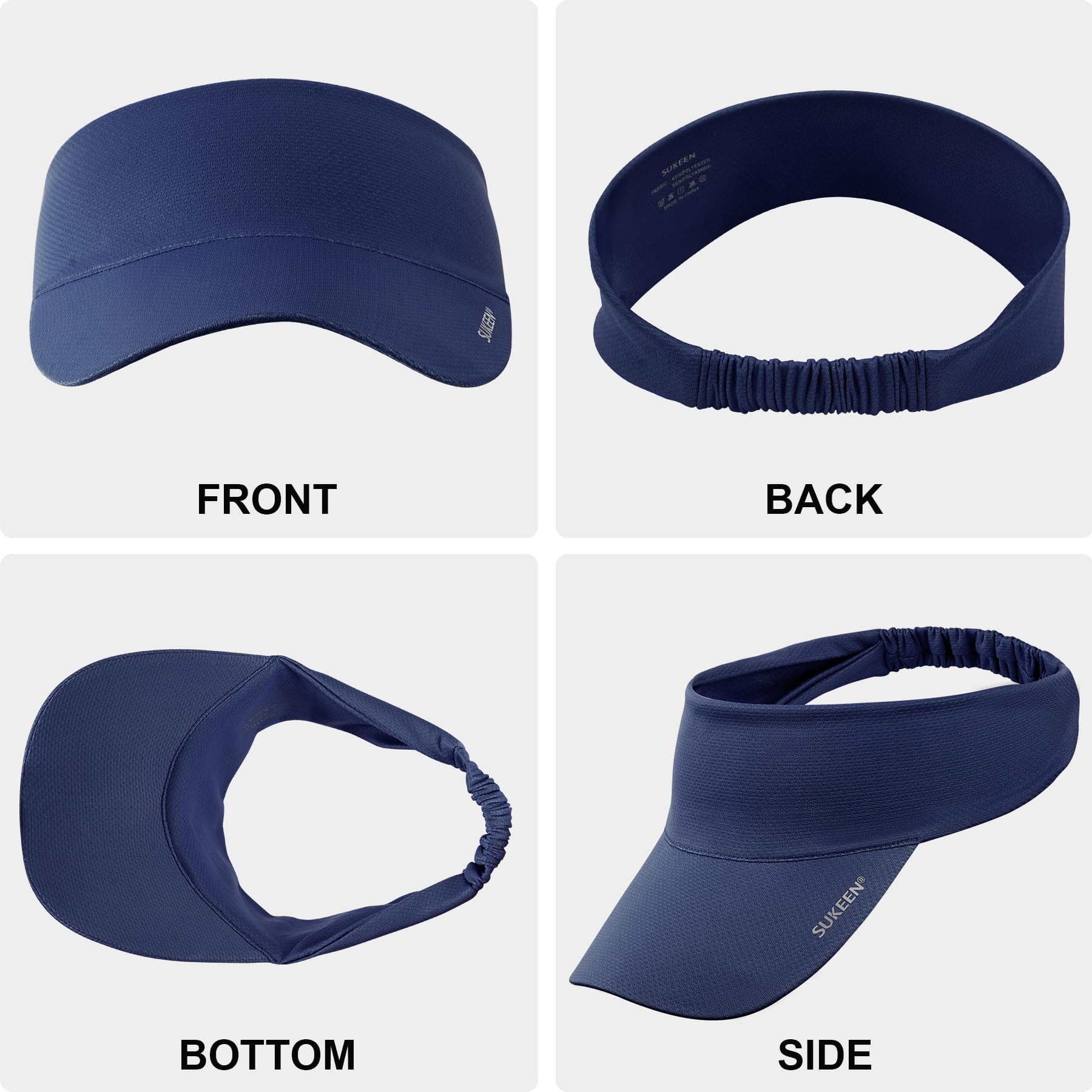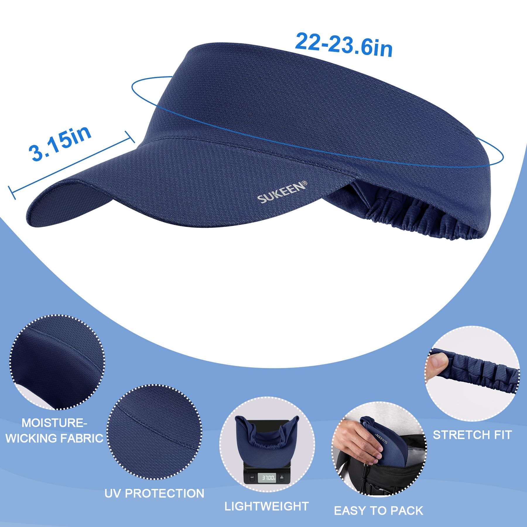 HIGH QUALITY: Our Sukeen Running Comfort Performance Sun Visor is fantastic. At just 1.6oz, the hat is very lightweight and comfortable, and comes in 4 classic colors to match your style, whether you're running, hiking, golfing, playing tennis, or even just relaxing. The mask's moisture wicking and quick-drying fabric helps keep sweat on your face, as well as protecting your eyes from harmful UV rays or constant driving rain.