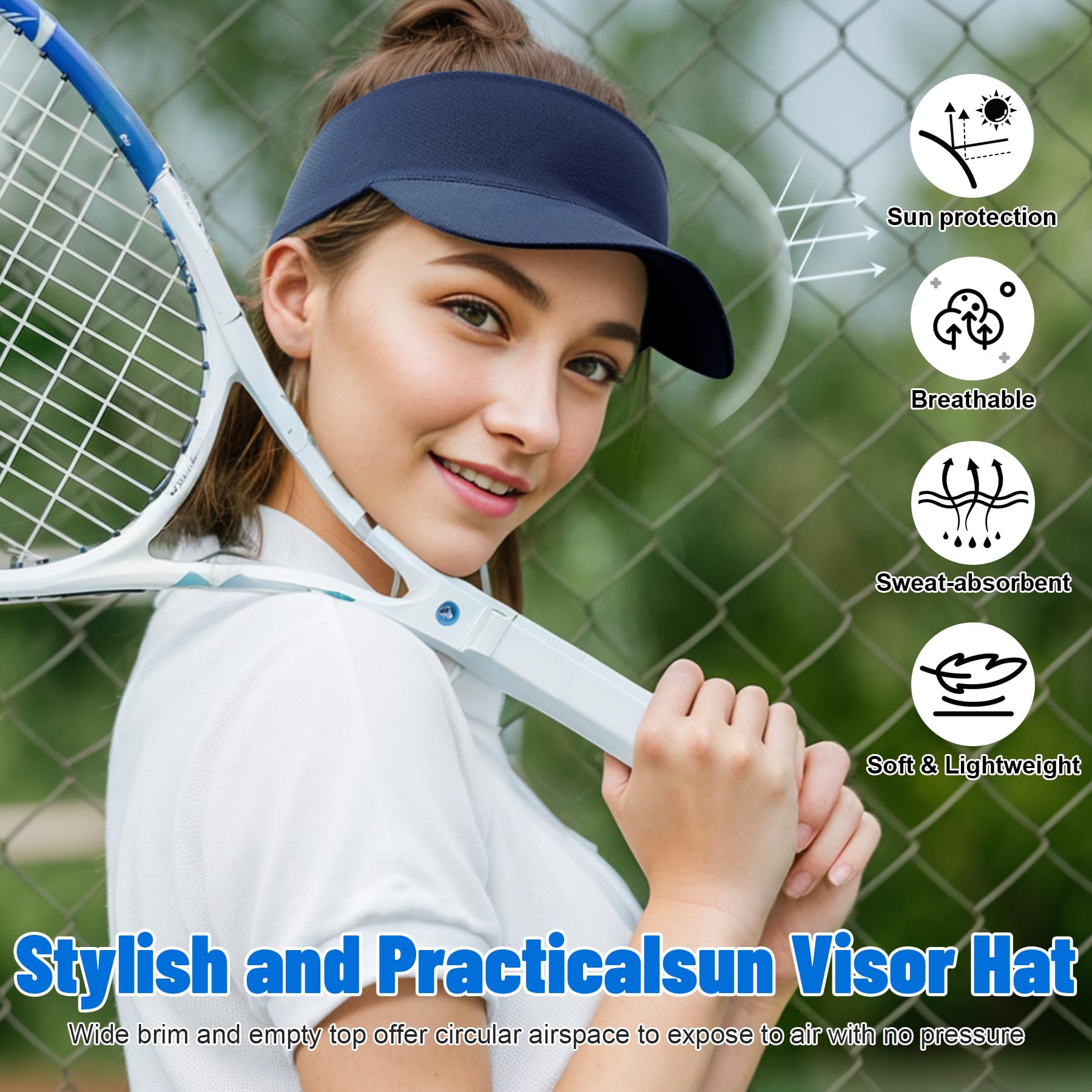 SUKEEN VISOR HAT: Elastic straps make the brim of the visor easy to fit. The open design makes this women's visor suitable for any hairstyle, and you can let your hair down or tie it up in a ponytail or updo while keeping your head from feeling stuffy, helping to dissipate heat and keep it cool and airy on hot summer days.