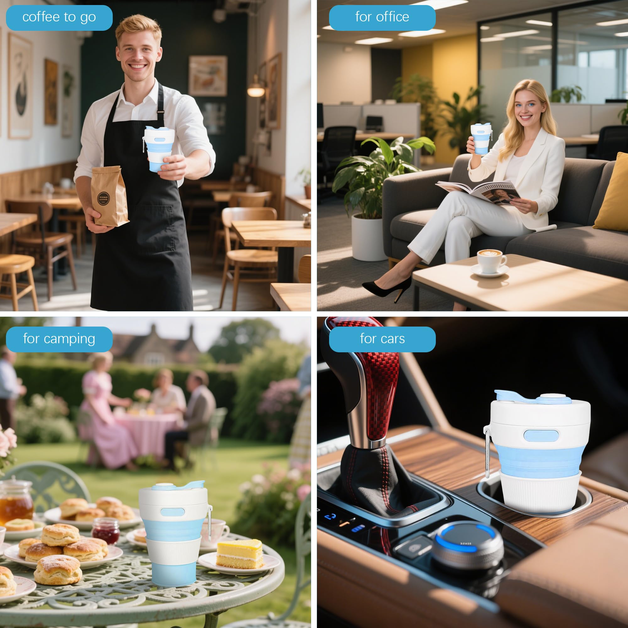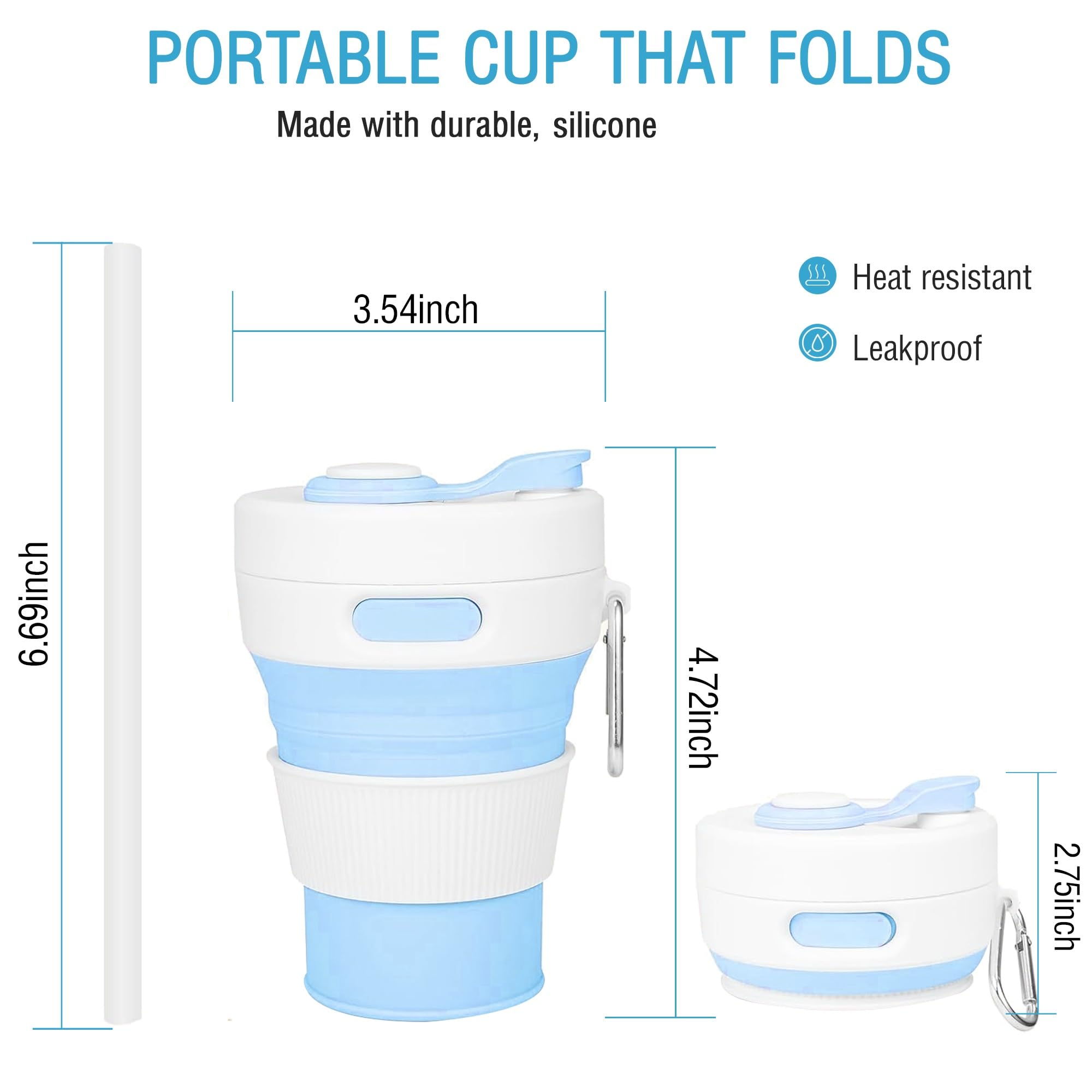 COLLAPSIBLE HIGH QUALITY TRAVEL COFFEE MUG: Bringing your own reusable mug has never been easier (or fun)! This compact mug holds 15 ounces and folds down to just 2.4 inches. The mug is perfect for drinks and picnics at home or on the go! When you're done using it, simply remove the insulated sleeve and fold it up. Leak-proof, airtight, non-slip and fits in car seats, pockets, purses and backpacks.