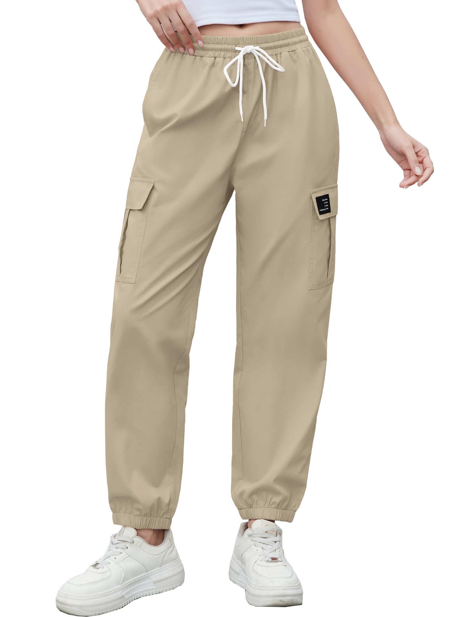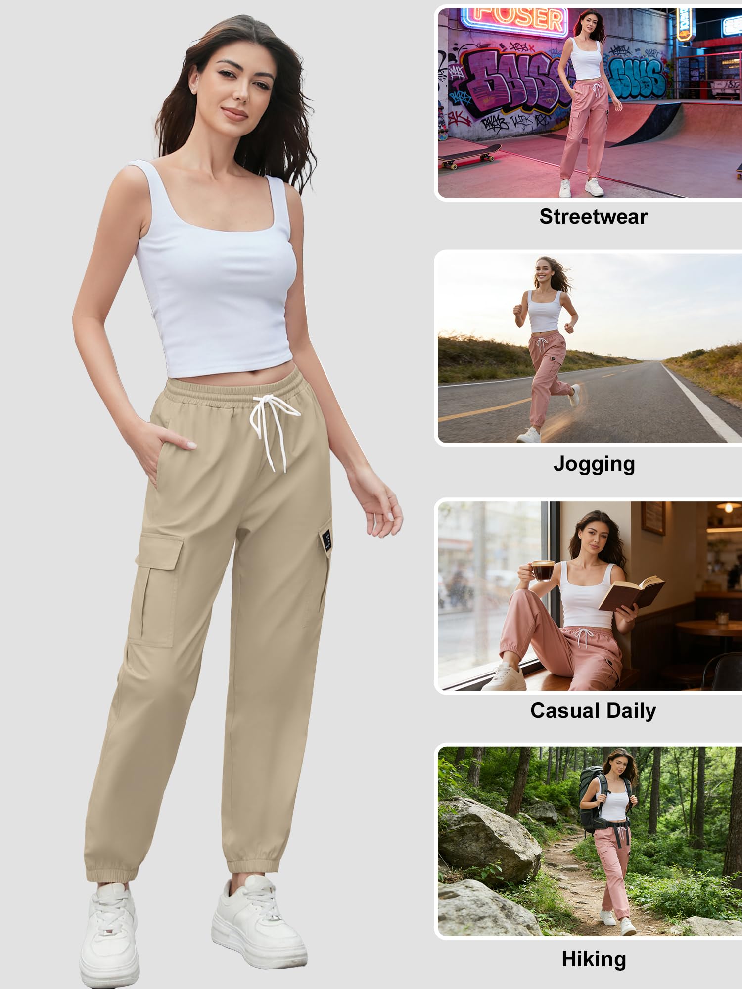 Design: It adopts an elastic ankle strap that fits the ankle well,is neat and fashionable,and convenient for exercise. A variety of pocket designs combine practicality and decoration. The elastic band waist design ensures no restraint when wearing and perfectly fits your curves. It adopts a conical cut,with a wider top and a narrower bottom. The hip and thigh areas are loose and comfortable,enhancing the shape of the legs and allowing for free movement. It is suitable for different body types.