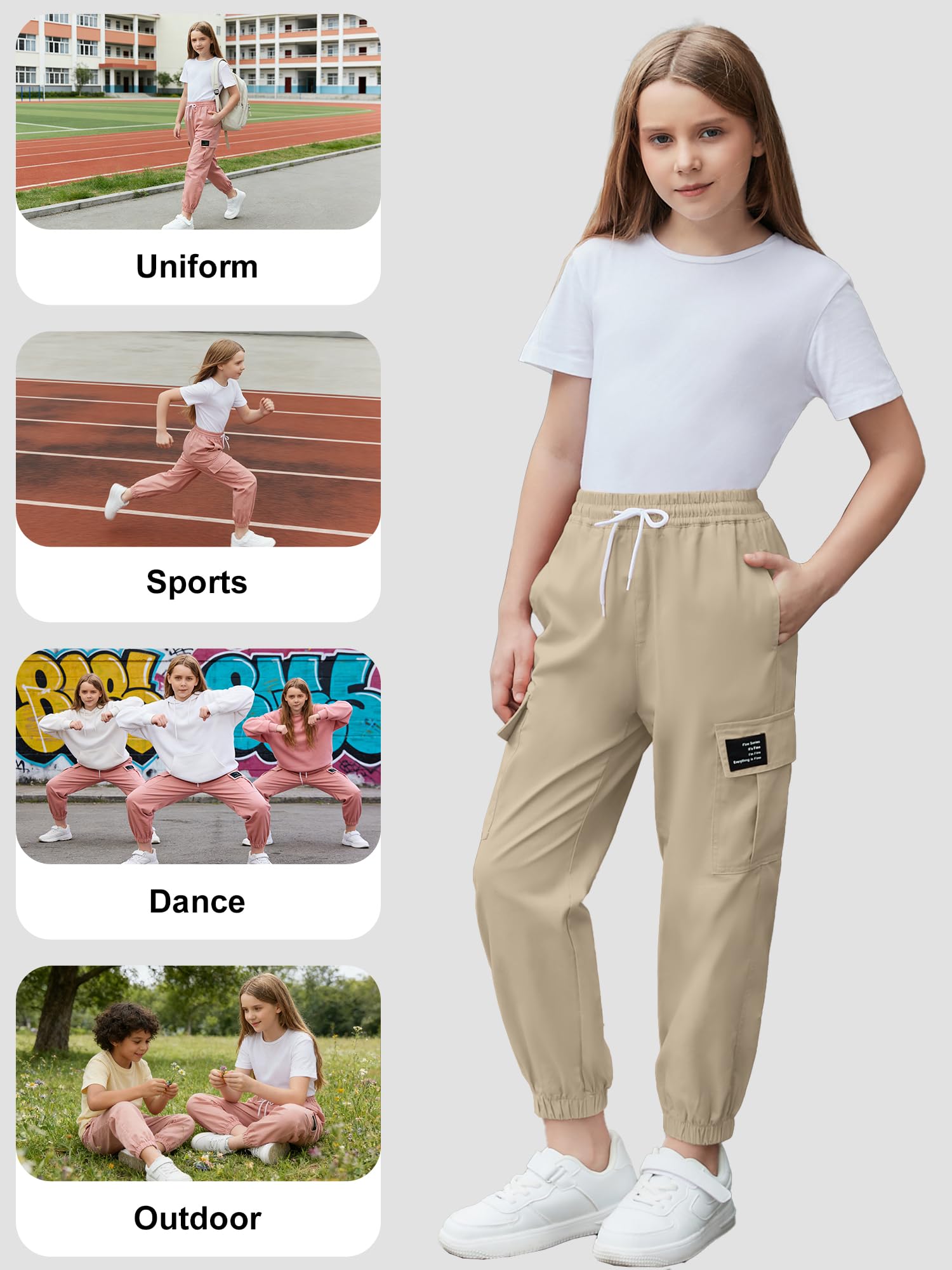 Material: 97% cotton and 3% polyester,Material of cargo pants designed for women and girls,breathable,wear-resistant,providing comfort throughout the day.