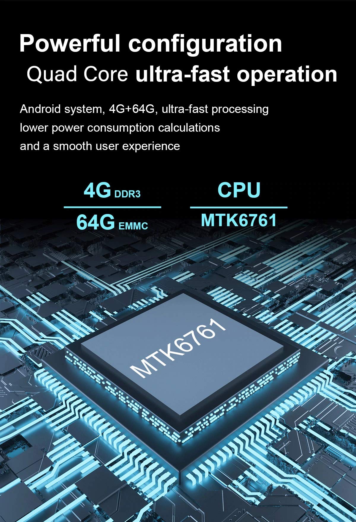 Android 9.0 OS: Equipped with the new Android 9.0 operating system,with an octa-core CPU and 4GB+64GB configuration,it runs at extreme speeds, allowing you to play mainstream mobile games without lag, helping you rule the battlefield.