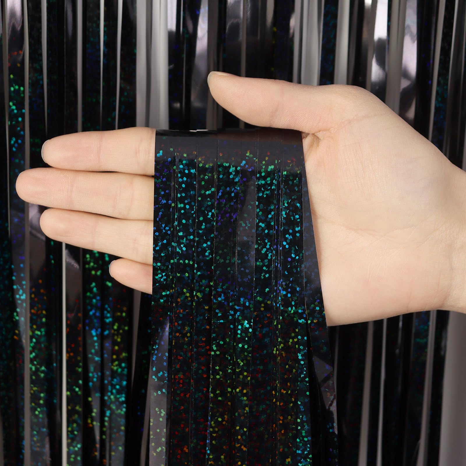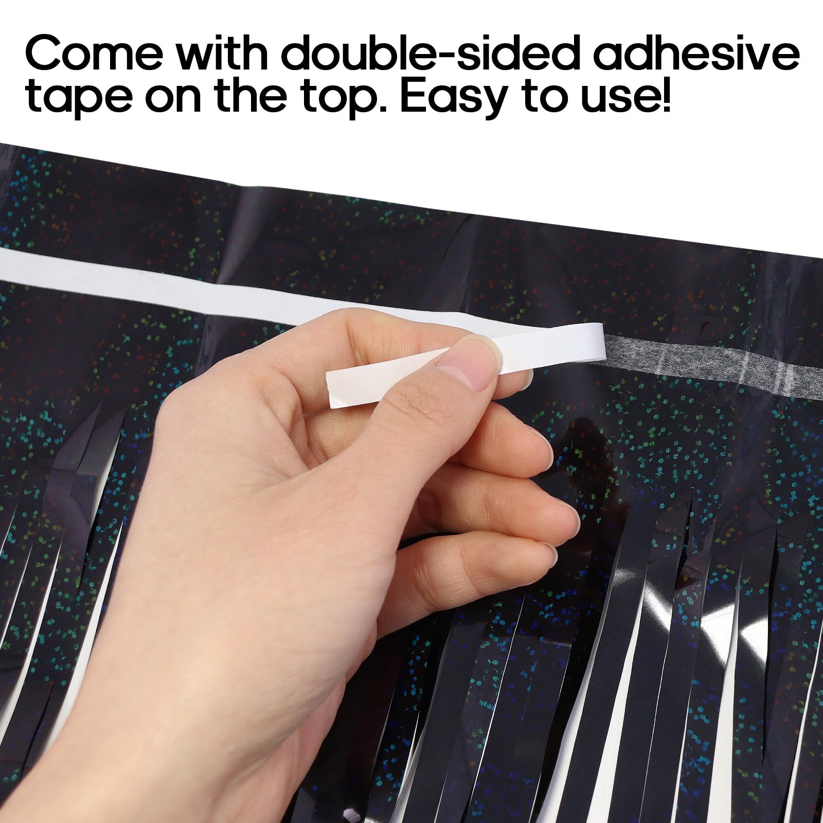 Warm Tips: Please Don't the Stick the Fringe Backdrop Curtains on Uneven or Stained Walls to Prevent it From Falling Off! Unique Materials: Made of unique foil materials. Creative theme party decorations! Thicken fringe curtains decorations. Szie: 2 packs foil fringe curtains. Each pack fringe curtains size is 3.28 x 6.6 ft. Shiny surface. Strong adhesive. Easy to tear off. Suitable for birthday wedding bridal shower holiday graduation party decorations etc.
