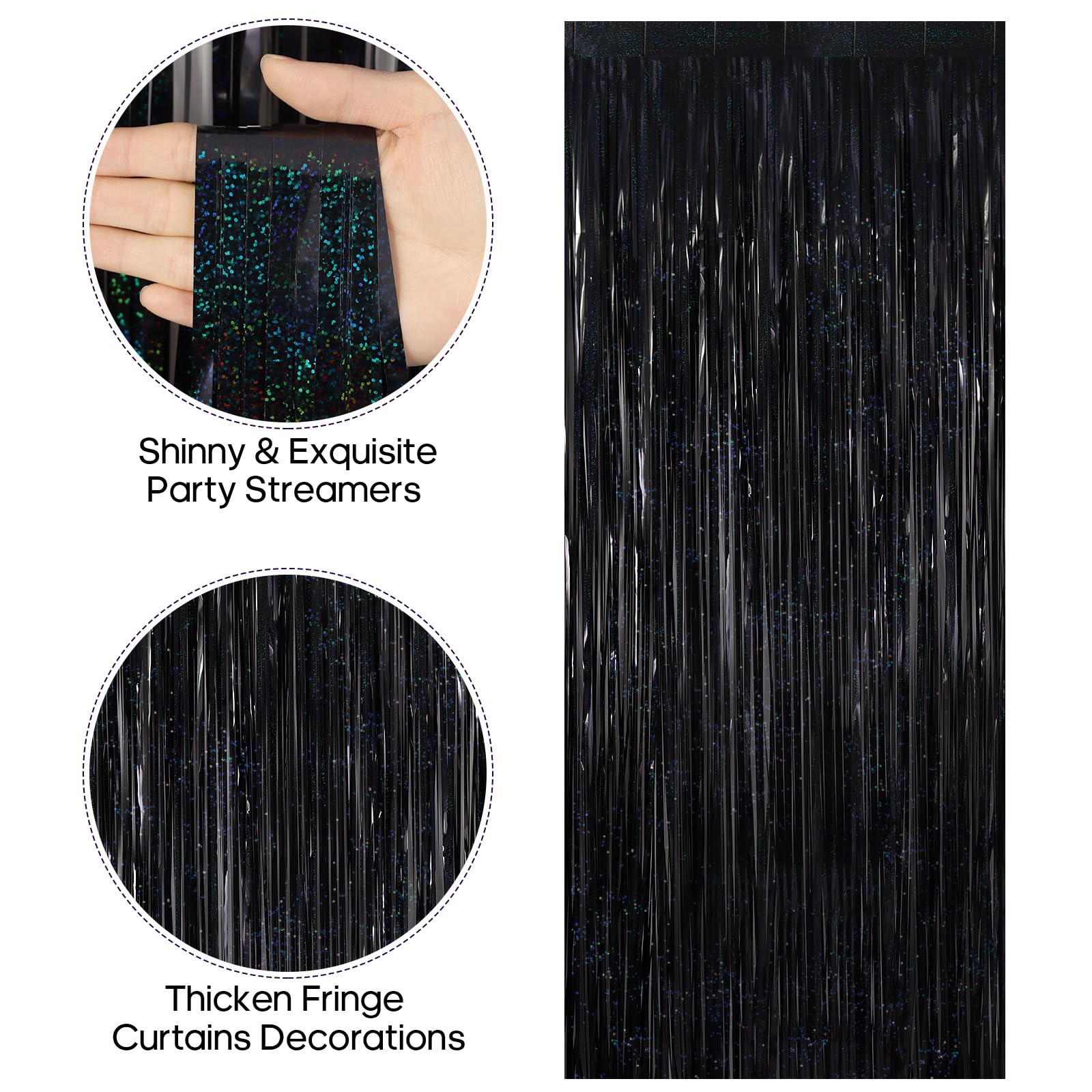 Sparkling Fringe Curtains: 2 packs foil fringe curtains. Each pack fringe curtains size is 3.28 x 6.6 ft. DIY party decorations according to your needs