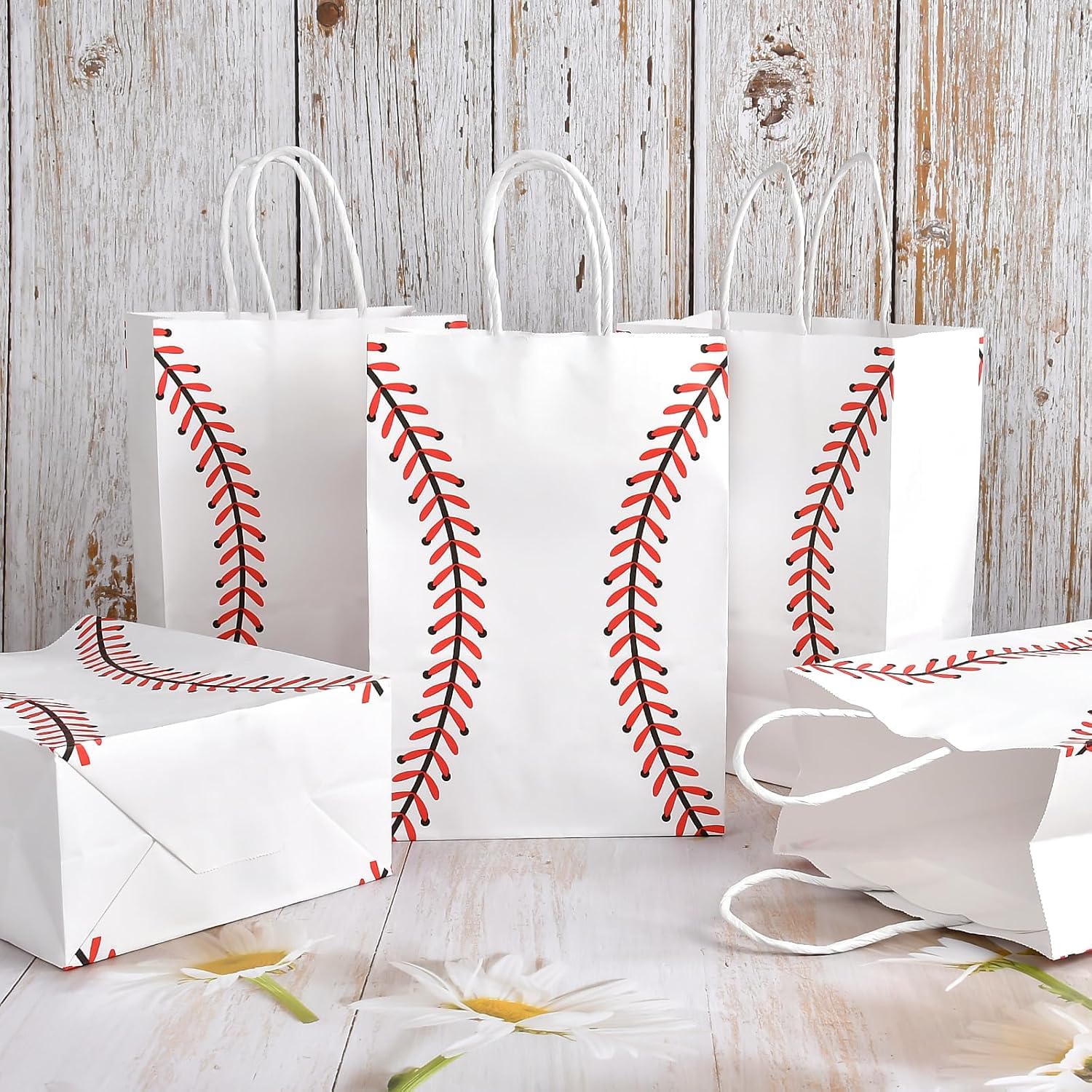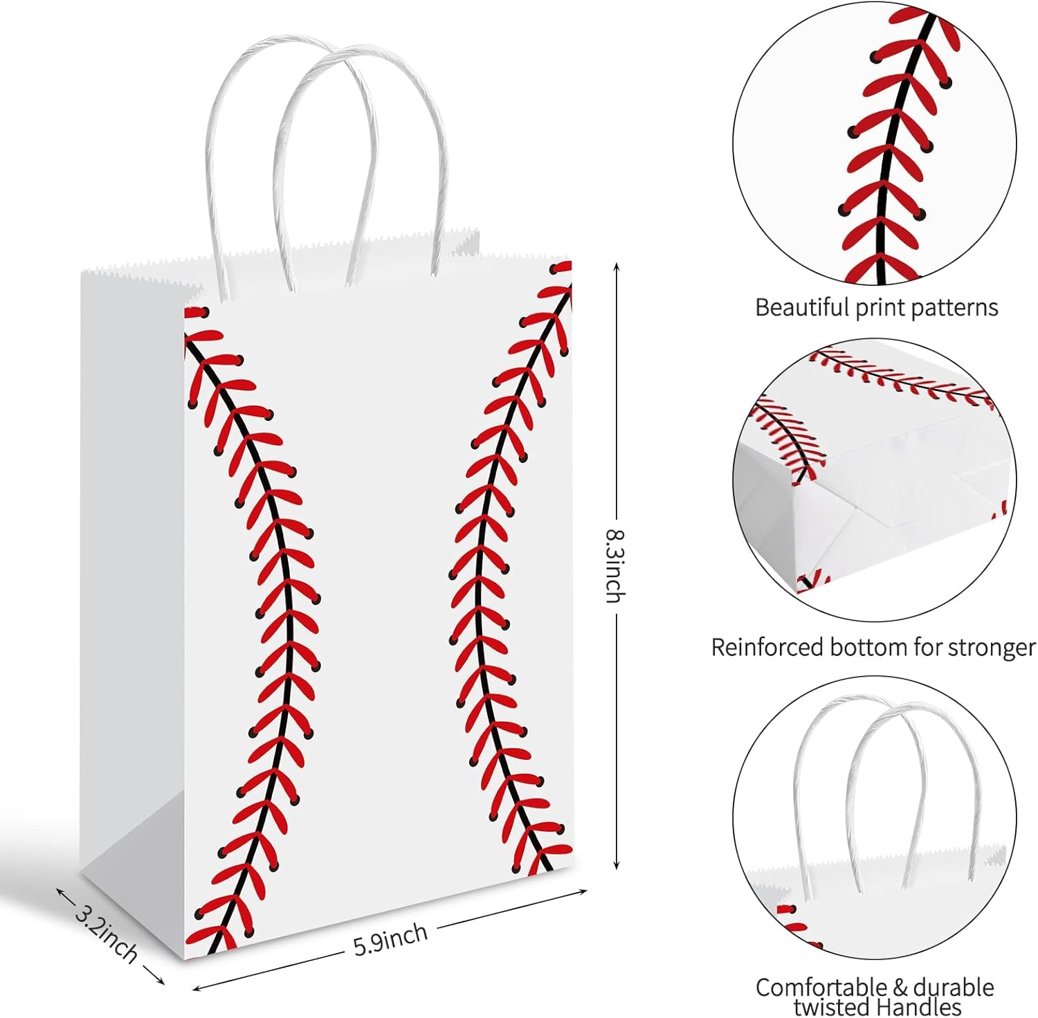 Premium Material: The baseball party favor bags are made of high-quality 150gsm kraft paper and printed with eco-friendly ink, excellent and durable. Value pack of 12 to meet your needs.