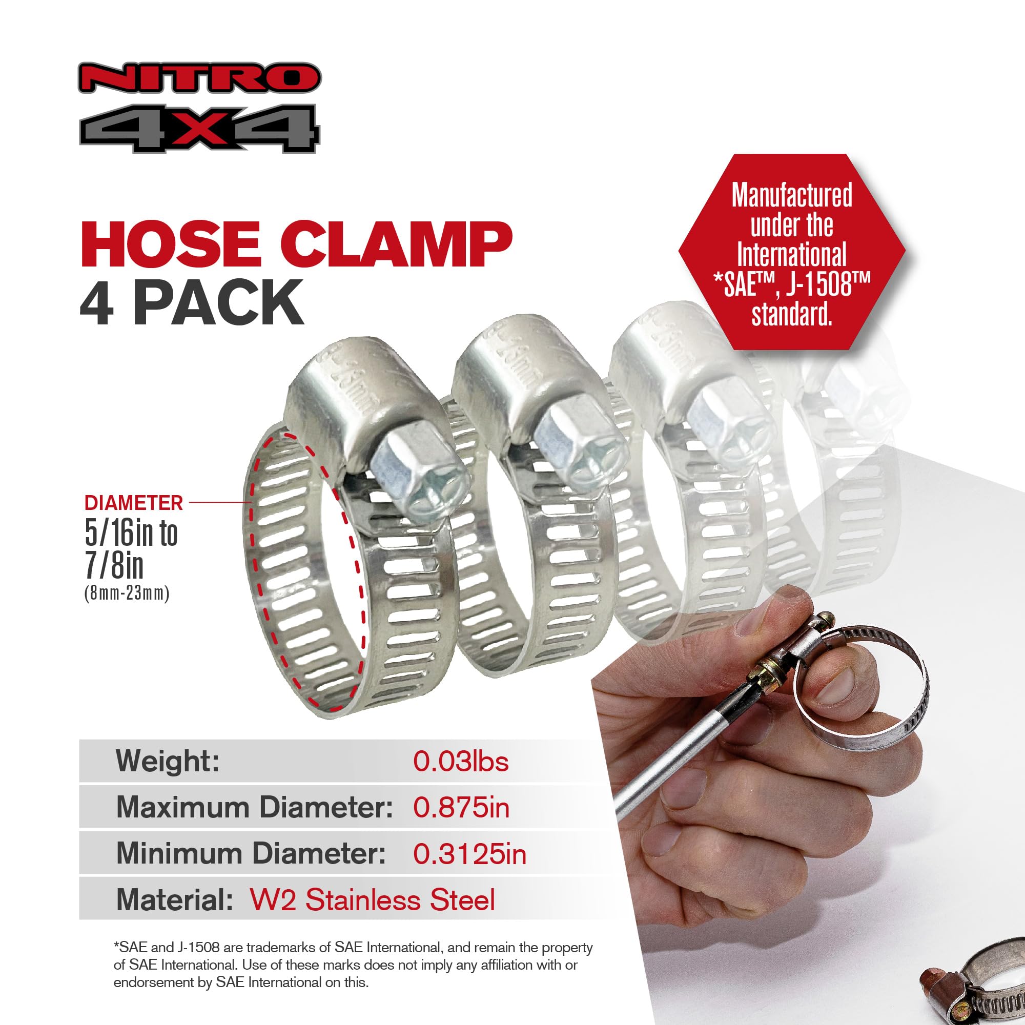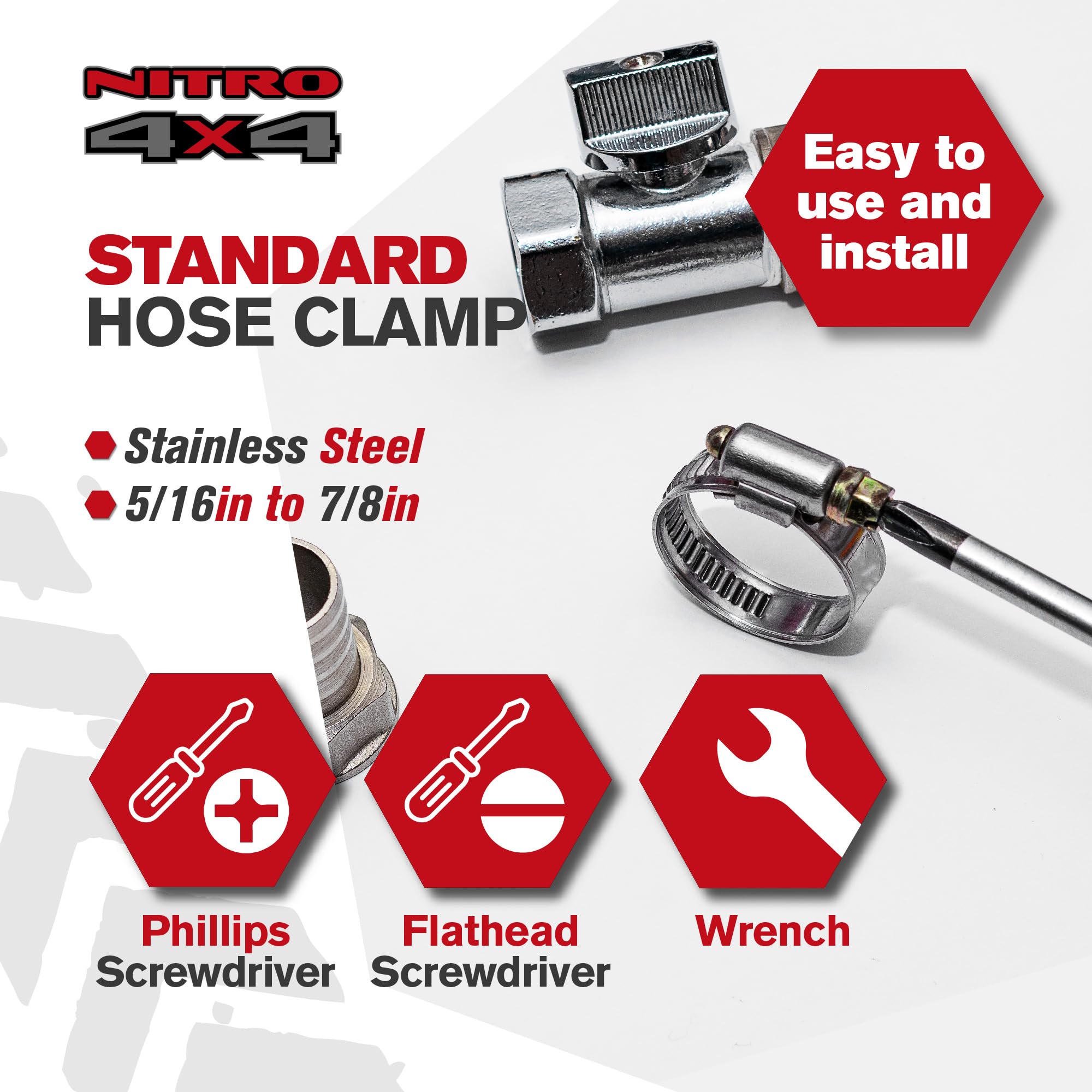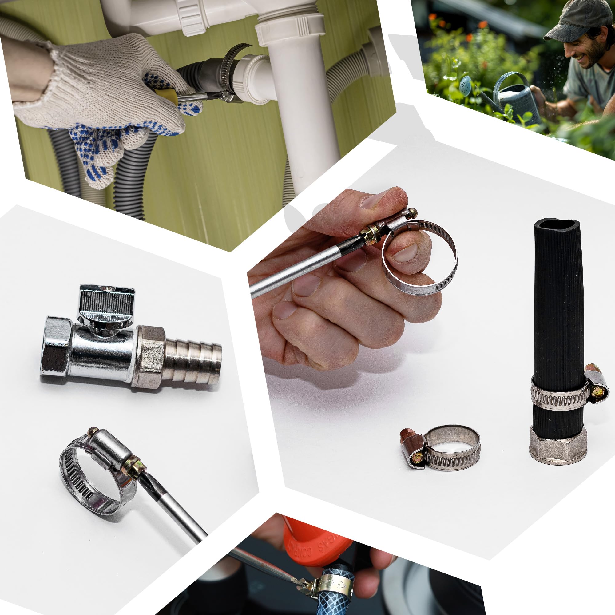 Adjustable Hose Clamp Set for Versatile Use: With an adjustable working range of 5/16 in. to 7/8 in. (0.3125 in. to 0.875 in.), these clamps provide a secure fit for various hose sizes, ideal for automotive, plumbing, and general use.