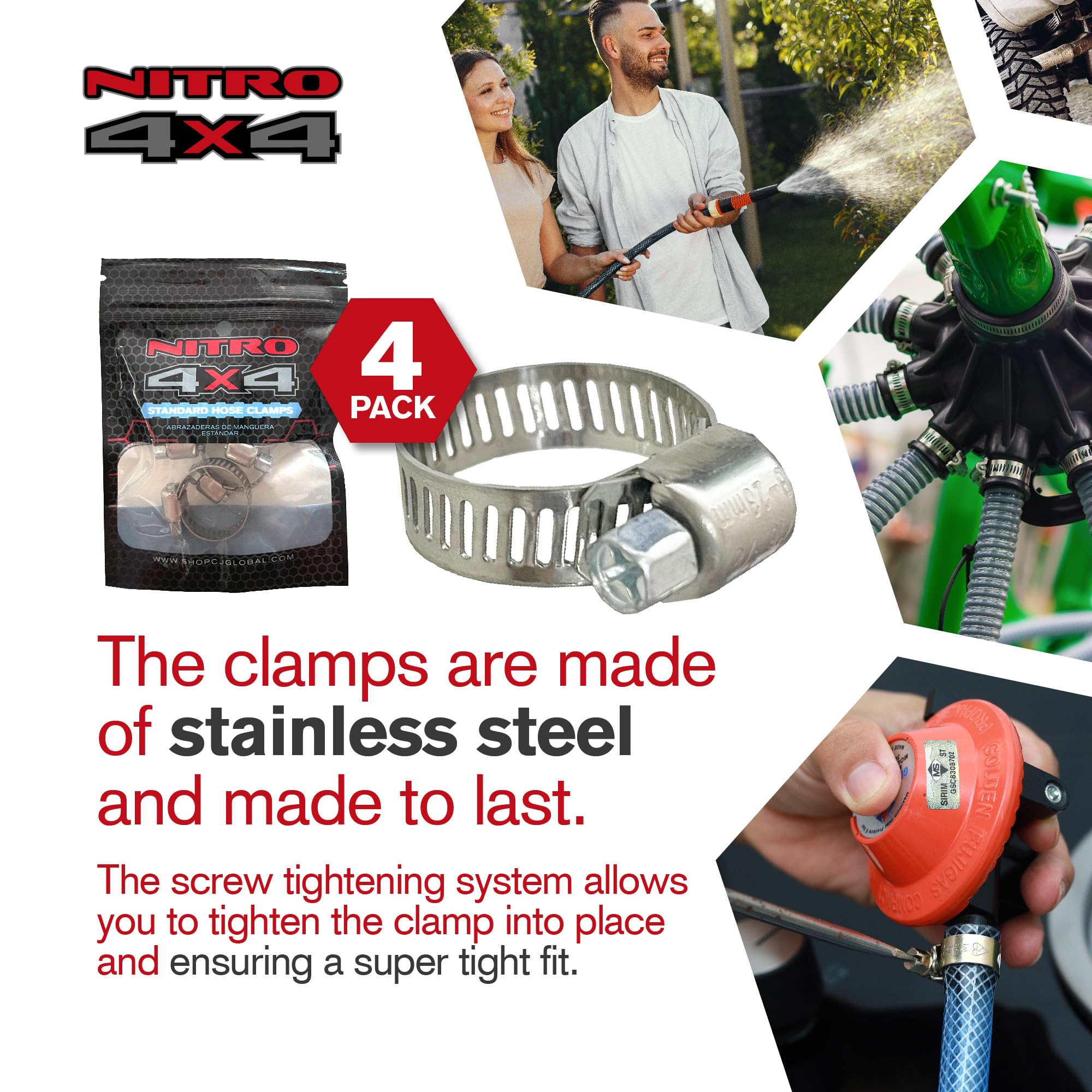Premium Stainless Steel Hose Clamps: Made from durable stainless steel, these clamps are built to withstand rugged use and offer excellent corrosion resistance, making them suitable for high-pressure applications.