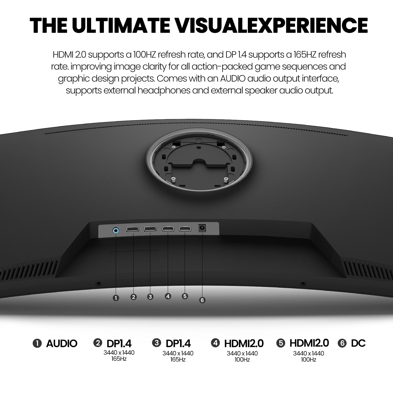 Flexible Connectivity: 34inch monitor offers a range of connectivity options to suit your needs. With 2xHDMI ports, 2xDisplayPort, and a 3.5mm audio port(Connected to play audio, no built-in speakers), it effortlessly connects to laptops, computers, and gaming consoles. for an immersive gaming experience. Enjoy the convenience of flexible connectivity and dive into endless gaming fun