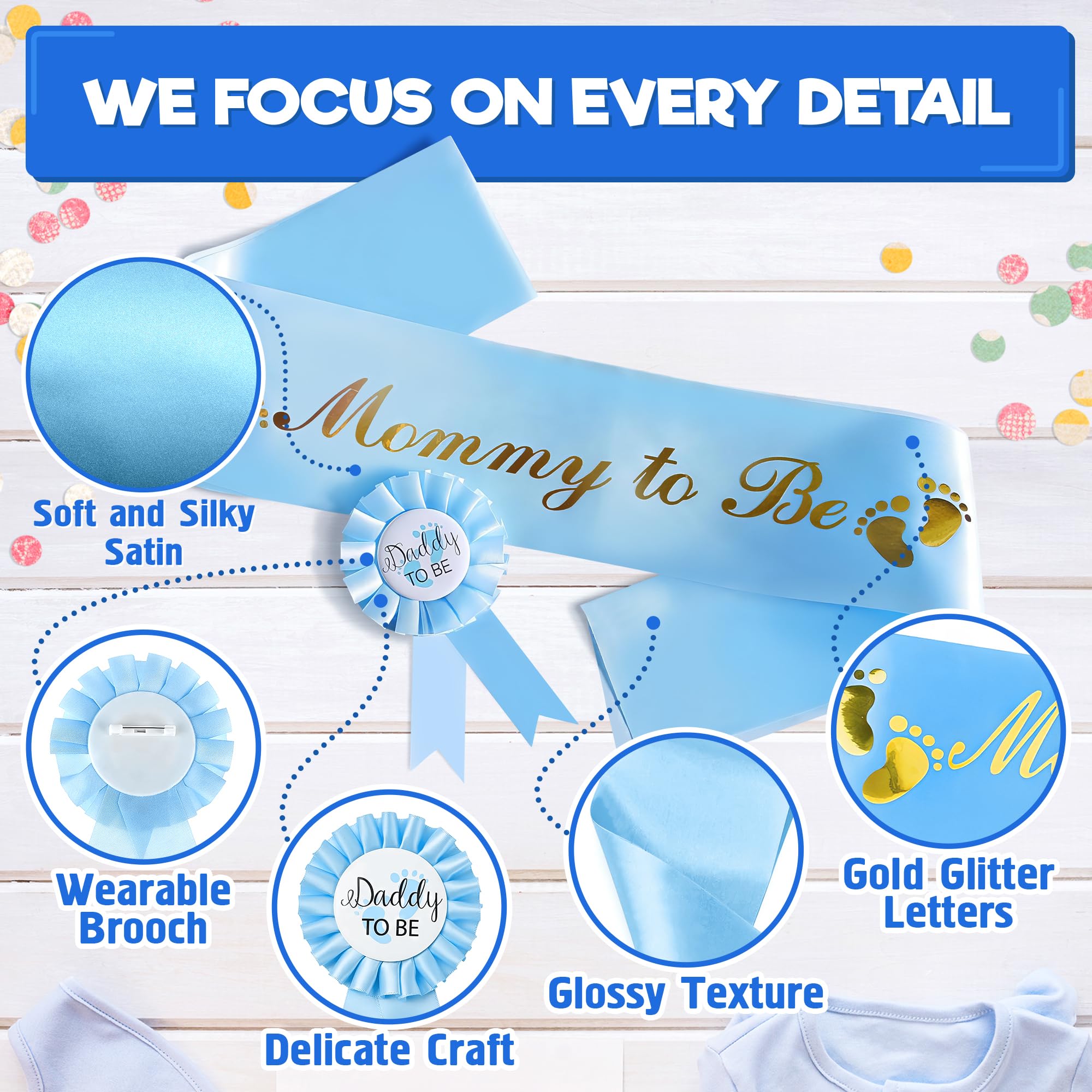 Durable Satin Baby Boy Shower Decorations: Made from premium satin, this mommy to be sash for baby shower boy is both lightweight and wear-resistant, adding an eye-catching touch to your celebration