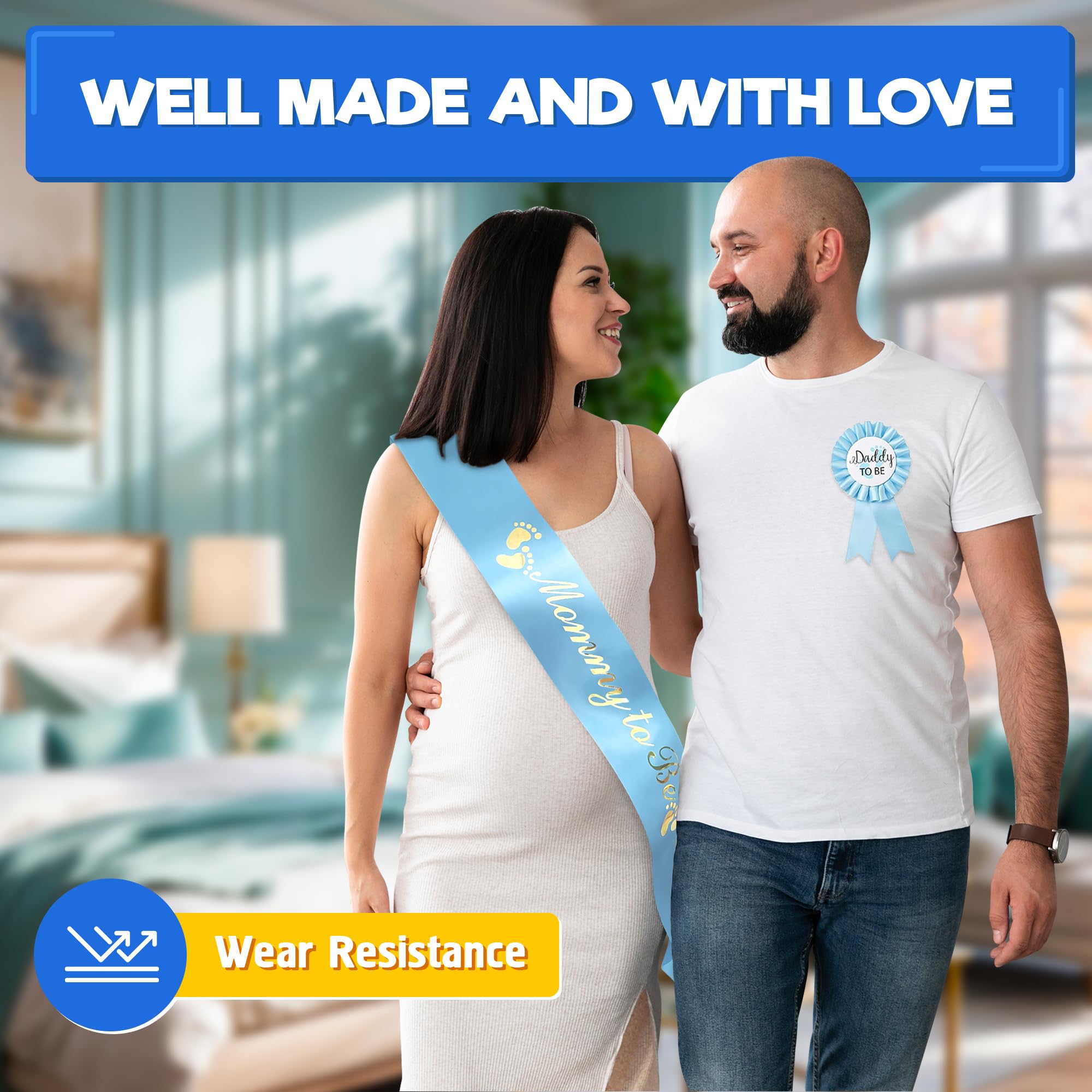 Tailored for Comfort: The 63x3.8" mother to be sash baby shower boy decorations ensure a flattering fit for most moms, while the 5.9x3.1" daddy to be pin pairs effortlessly with any outfit