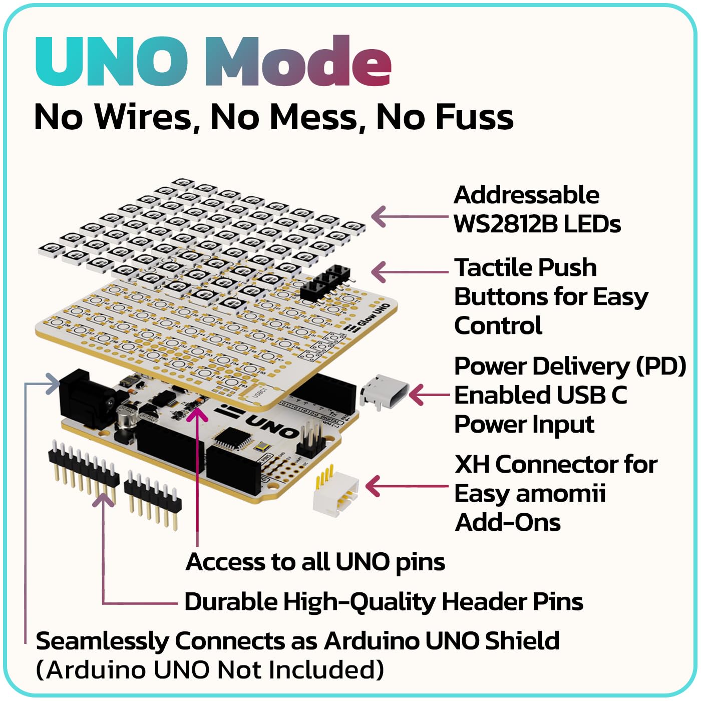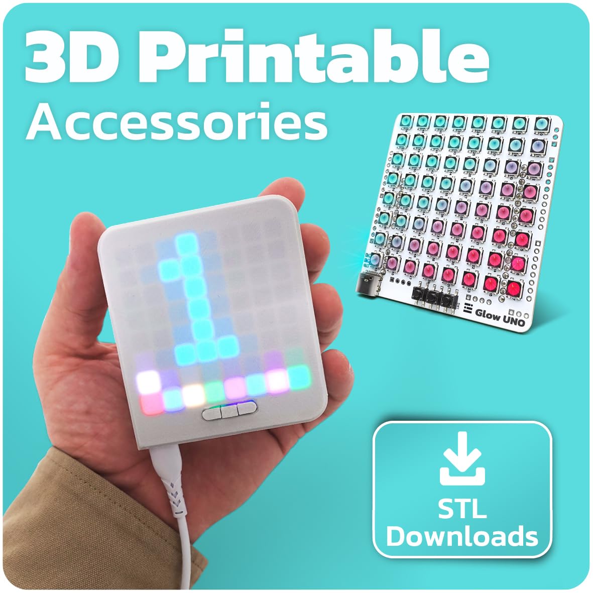 amomii USB C WS2812B Matrix Shield for Arduino UNO - 8x8 Individually Addressable RGB LEDs, Built-in Buttons| DIY Electronics STEM Project Gift for Adults and Teens - 3D Print Accessories