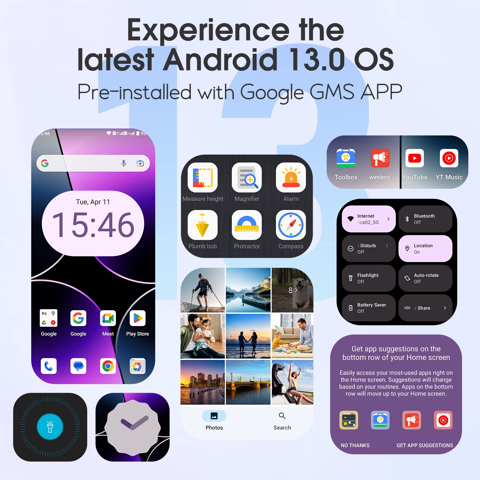 【Android 13 OS】:Your experience gets even better with the newer Android 13, which is more personal and privacy-focused. The pure version has no ads or unwanted pre-installed software. It's all about what you want.