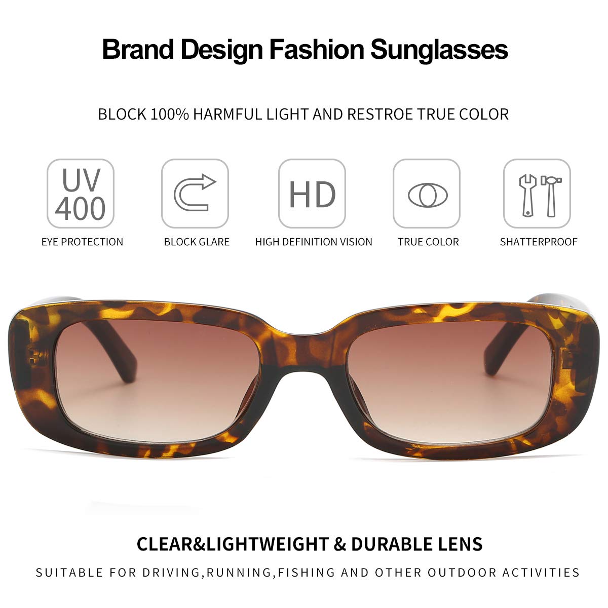 【UV400 PROTECTION TRENDY SUNGLASSES】These square sunglasses can block 100% harmful UVA, UVB rays, protect your eyes against long term UV damage. High-Definition Lens Gives you a Natural & Clear Vision, and keeping your eyes healthy.