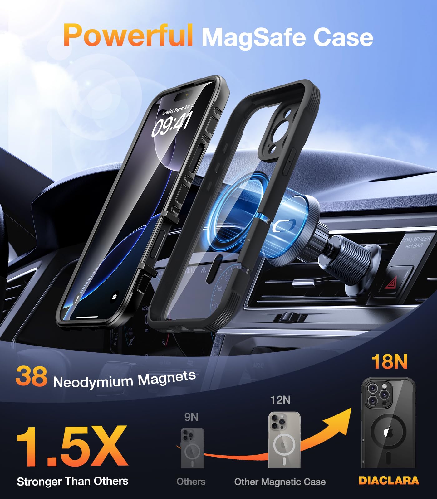 【Suitable for All Magnet Accessories】Diaclara designed for iPhone 16 pro max case built-in N52 magnetic ring that is compatible with magsafe accessories. The strong magnetism supports charging from any angle, making wireless charging faster, easier and safer. No need to worry about the charger being separated from the phone anymore.