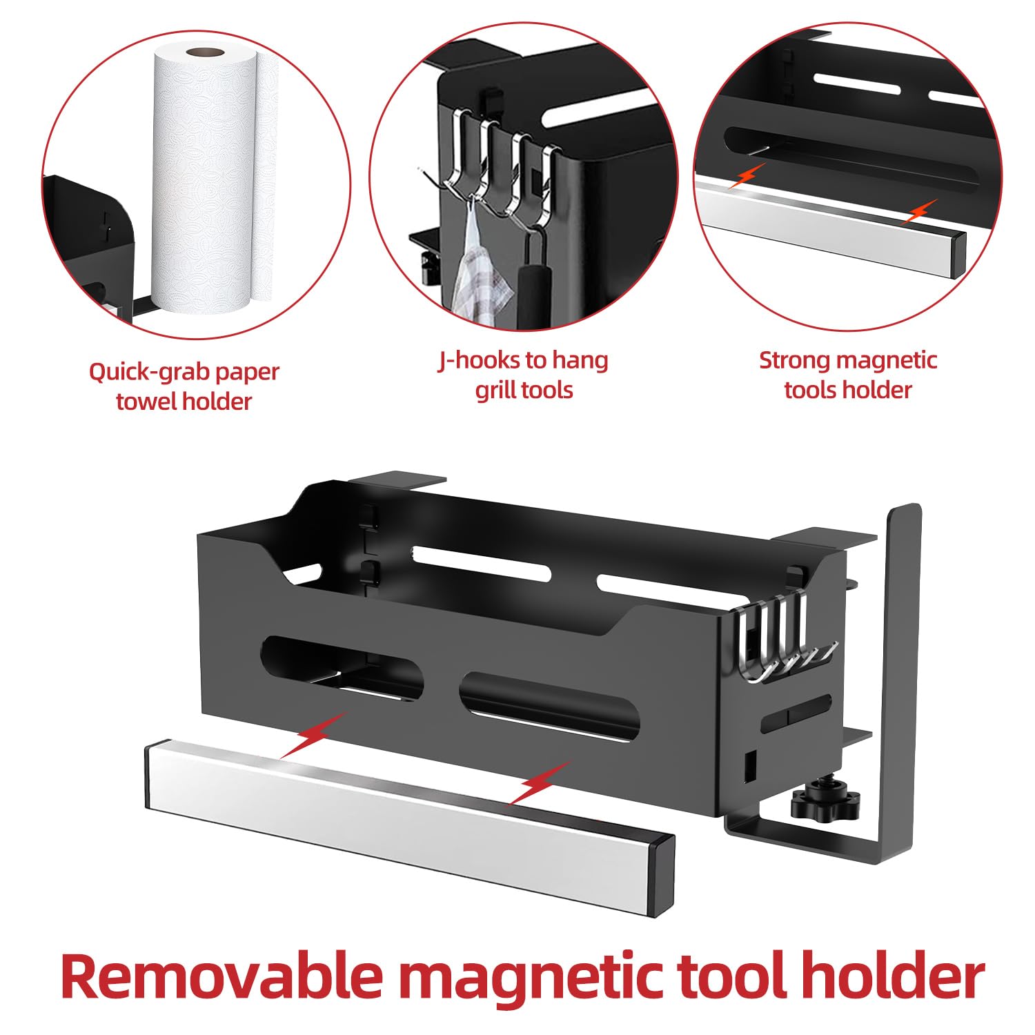 Package: You will receive 1 versatile Blackstone caddy, 1 paper towel holder, 1 magnetic tool strip, 4 J-hooks, and 2 clamps, all backed by our reliable 24-month warranty and our consistently friendly customer service.