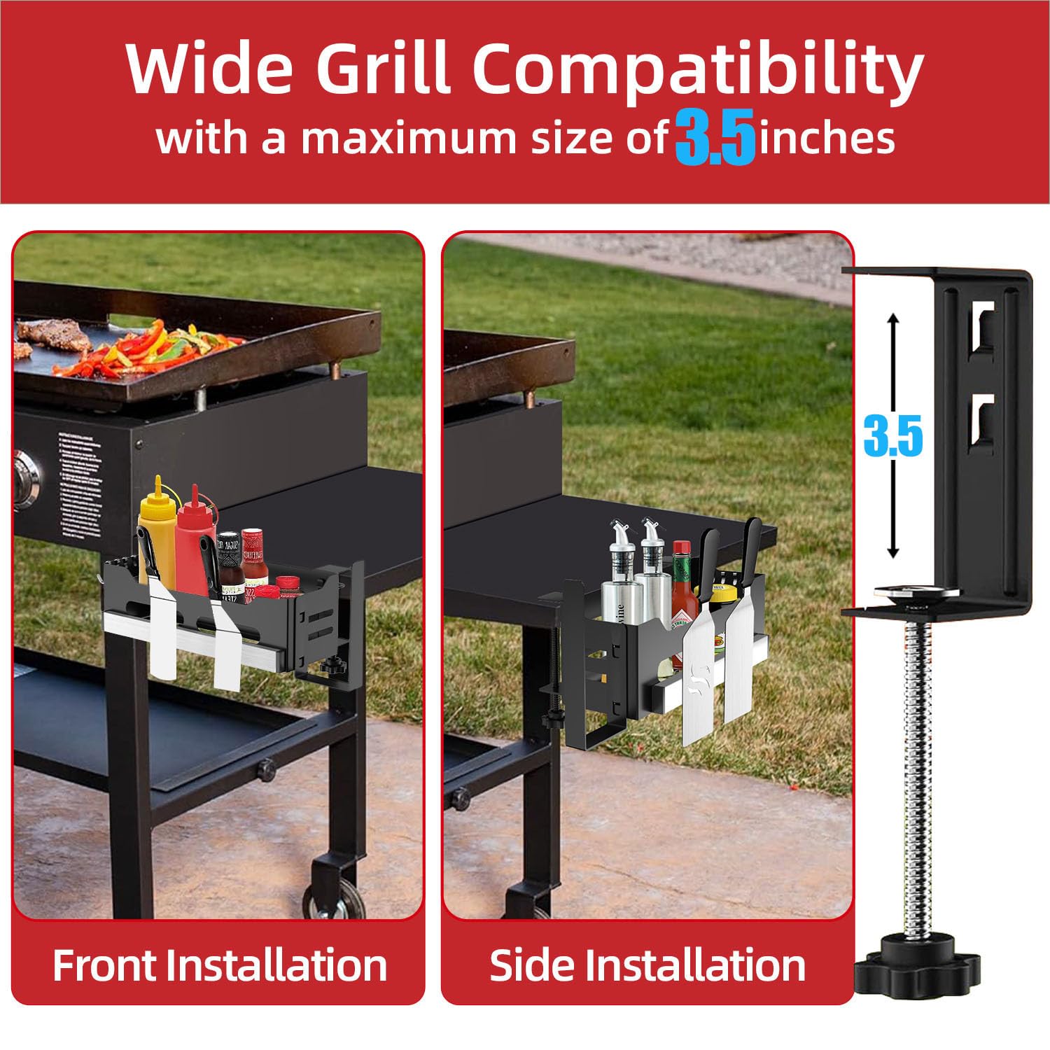 Versatile Fit with Various Countertop: Our outdoor Blackstone griddle caddy provides stability and versatility for griddles beyond 28 or 36 inches. Our Blackstone storage securely fits on side shelves, tables, or countertops, ensuring convenient access to your Blackstone accessories. Easy installation of the Blackstone tool holder ensures a swift start to your grilling enjoyment.