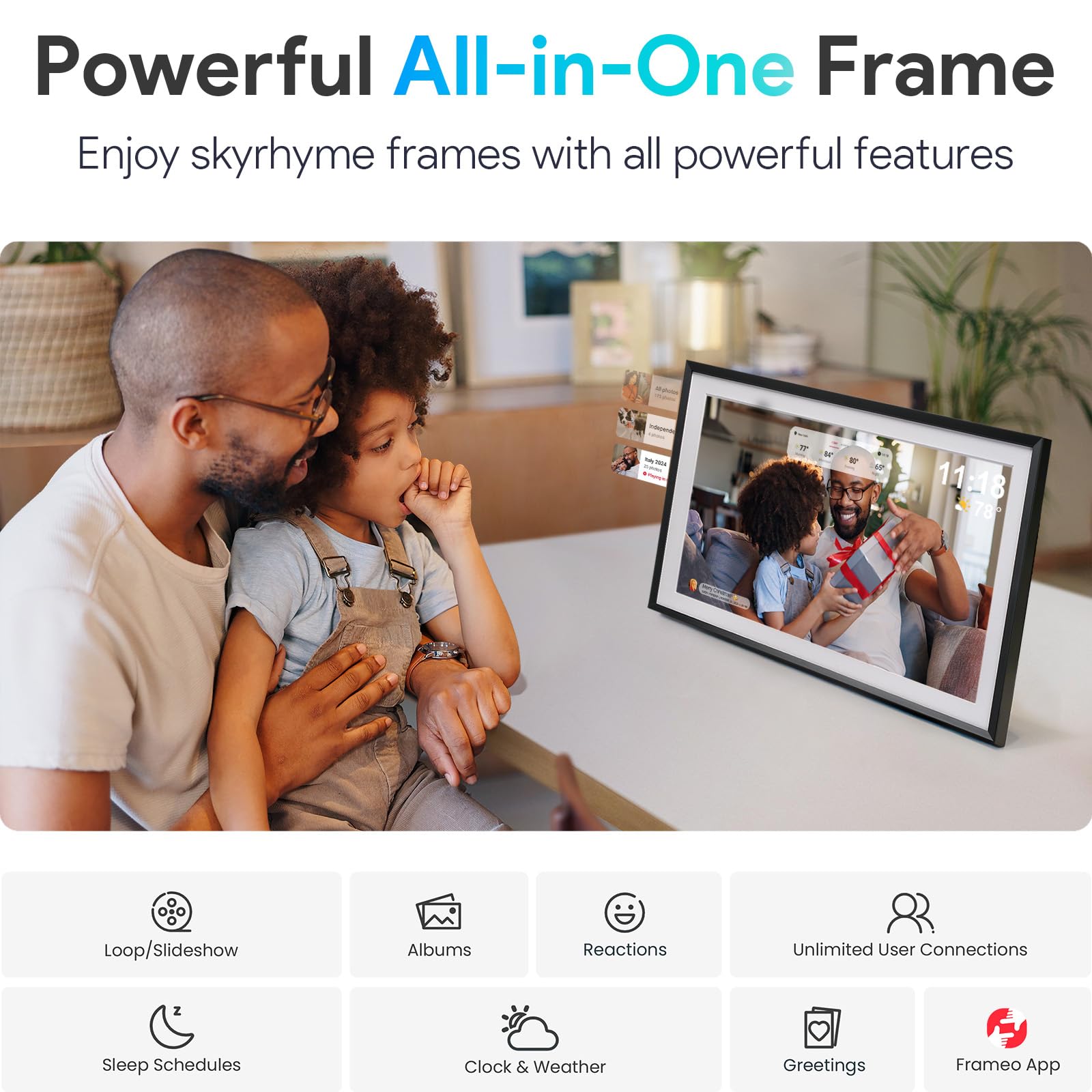 【Connect With Your Loved Ones】SKYRHYME WiFi digital picture frame will be a wonderful Christmas Gift for your loved ones to connect with you no matter how many miles apart. The embedded Frameo app is very simple and easy for all people to use, especially the elderly or non-techies. Stay connected with your loved ones using our smart electronic picture frame that captures laughter, love, and life.