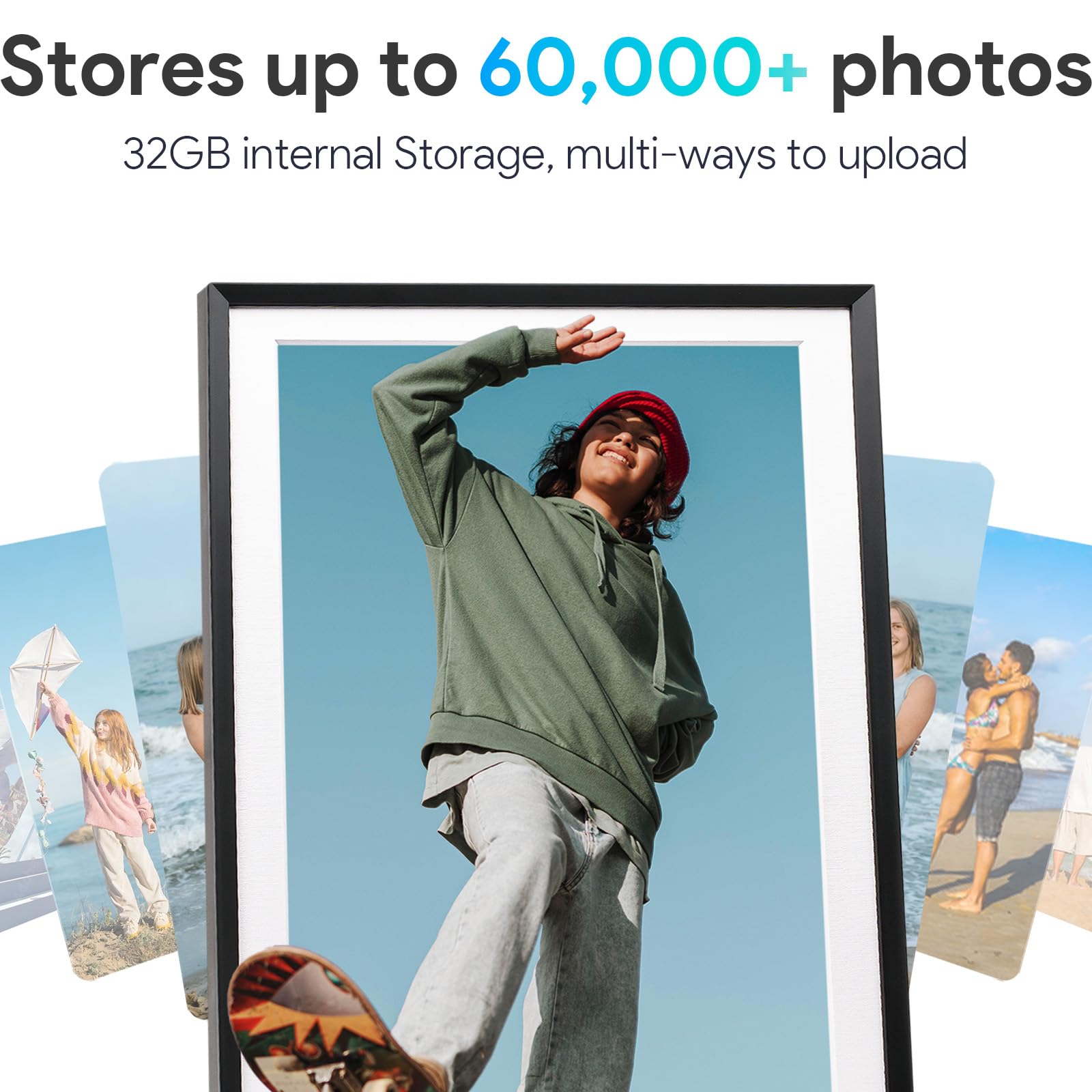【Upgraded 32GB Storage Capacity】The upgraded 32GB storage capacity allows you to upload 30,000+ photos and preserve every treasured moment. You can insert a micro SD card (32GB max. supported) or use the USB port to easily import/export your favorite pictures and videos from your digital frame. Pictures and videos can also be played directly from the micro SD card.