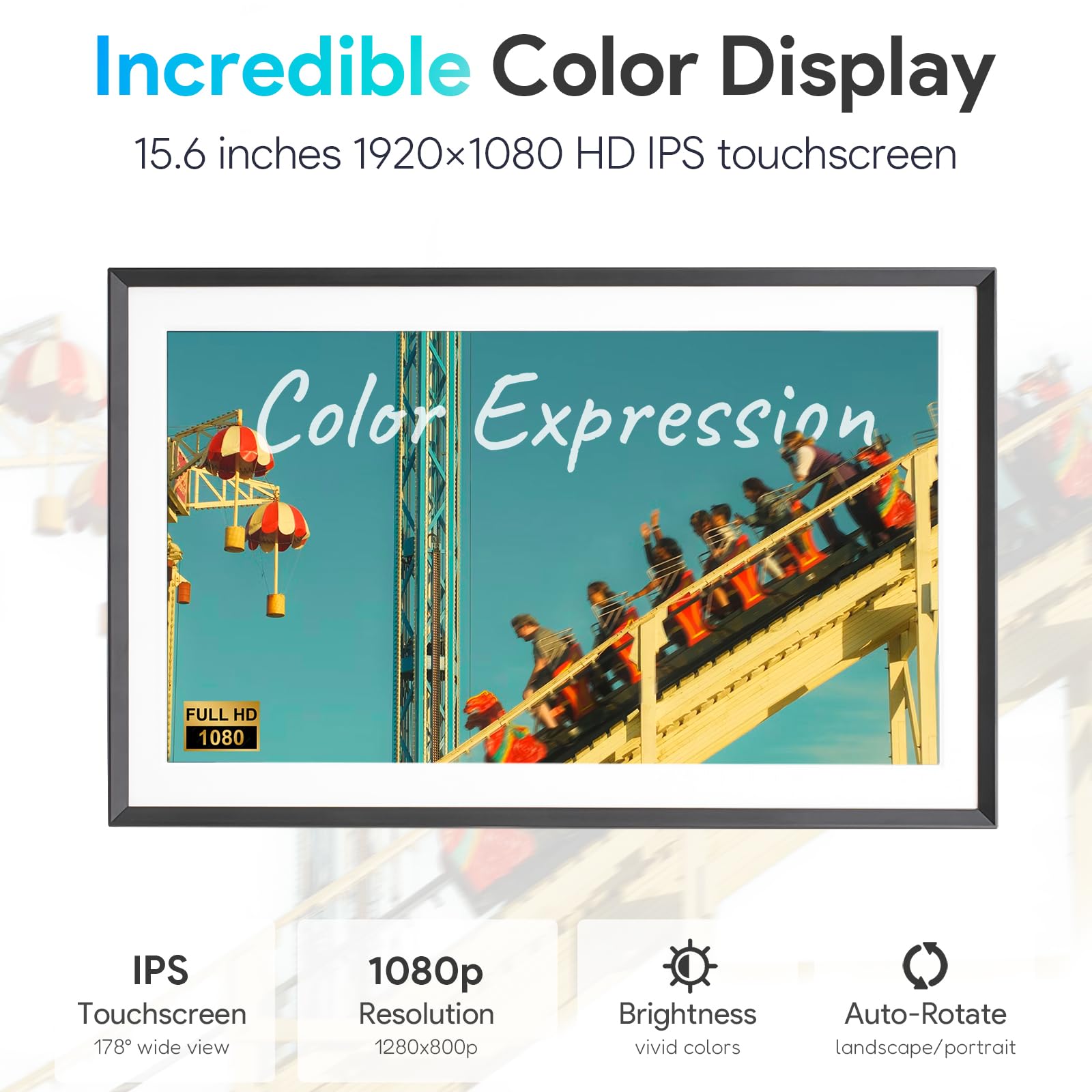 【Extraordinary Viewing Experience】The enhanced 15.6 inch IPS touchscreen with 1920x1080 resolution delivers vibrant colors and 2x the clarity of standard HD digital picture frames. SKYRHYME 15.6’’ digital picture frame helps you keep every smile in stunning detail and bring all your favorite memories to life in vivid, vibrant Full HD 1080p.