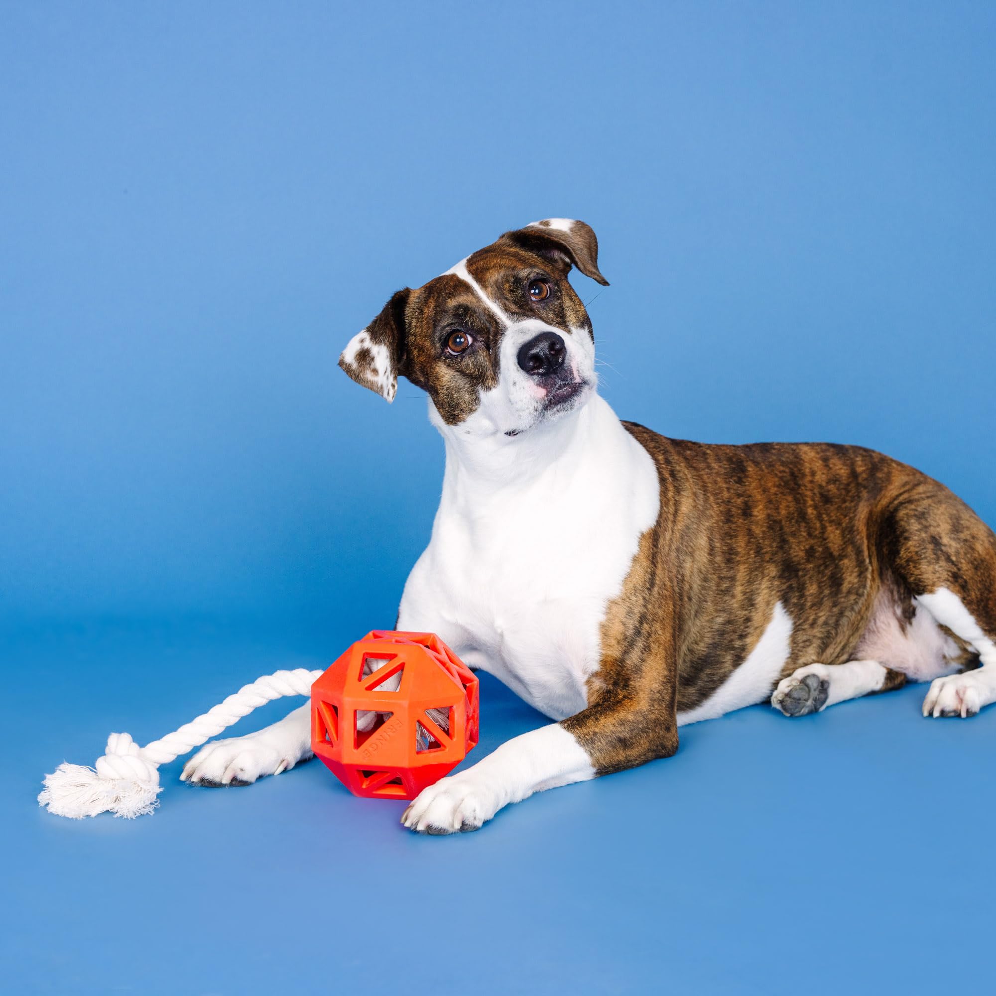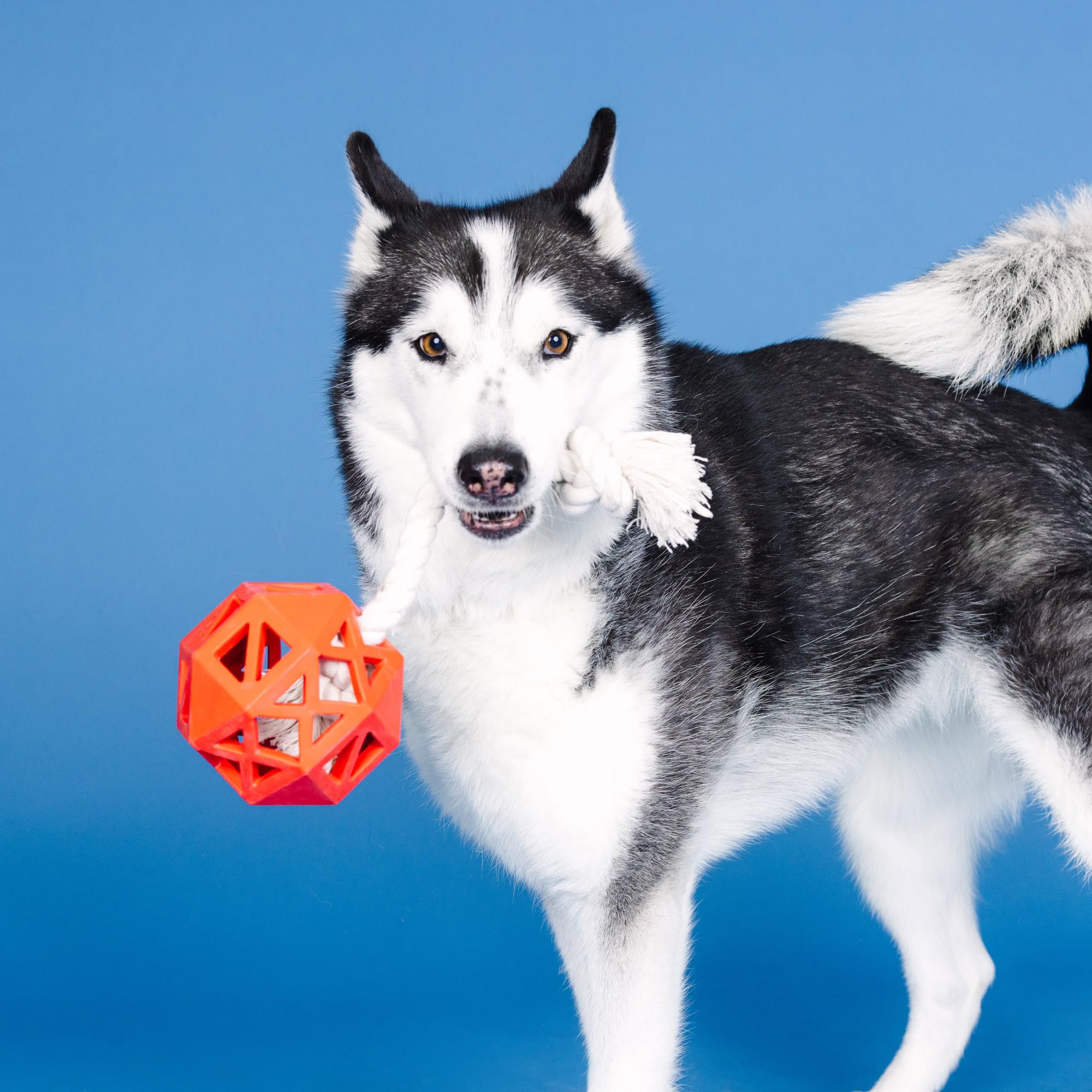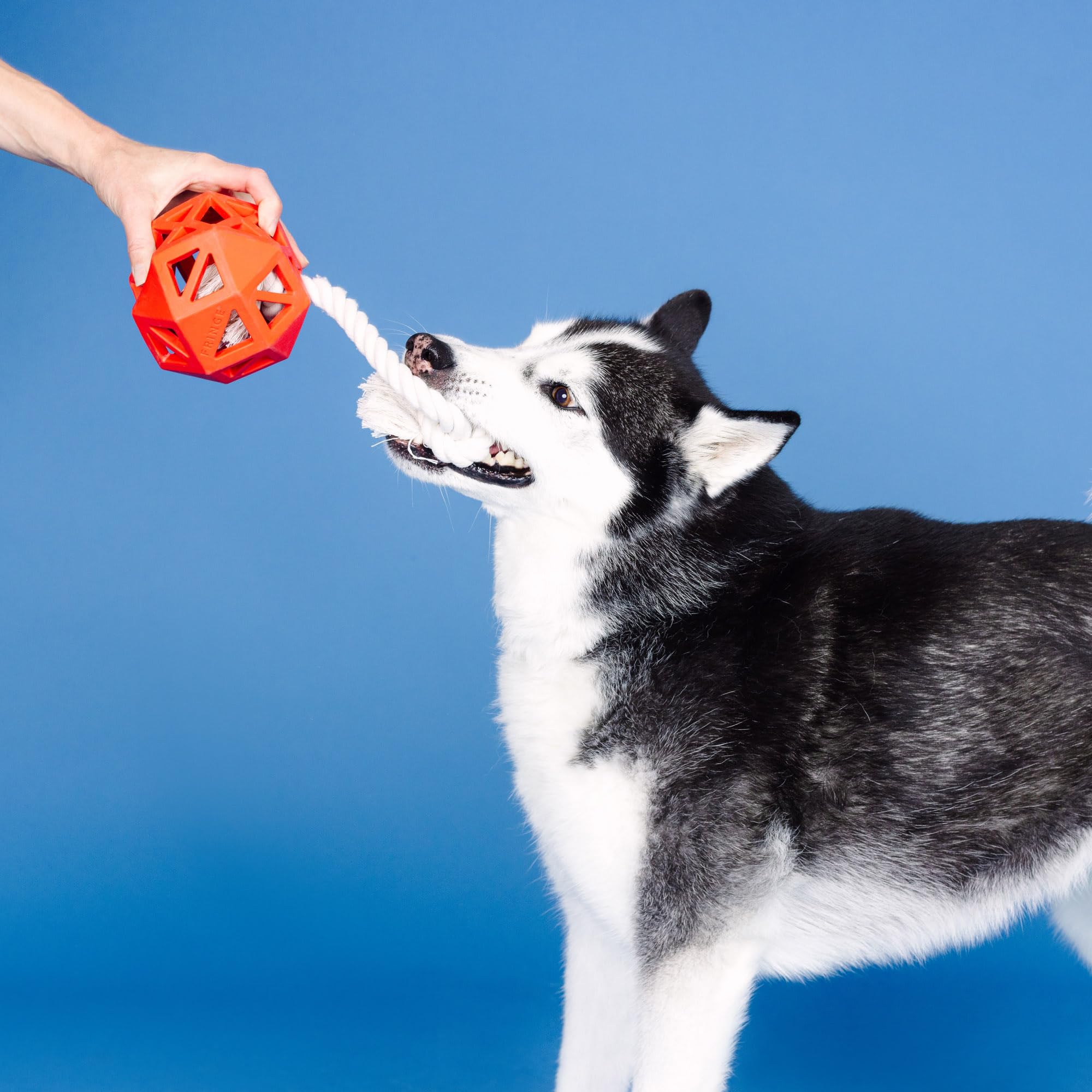 Ready to join the Dura Club? PetShop by Fringe Studio's "Pull My Way" red rubber dog toy is for pups that love to work for their treats, chew, and play lots of fetch. Made with natural rubber, a treat dispenser, tuggable rope, and an erratic bounce, this toy was created for long-lasting interactive play. Simply toss it for some fetchin' fun or fill it with treats to keep your pup busy trying to get them out. Great for all-sized dogs and strong chewers.