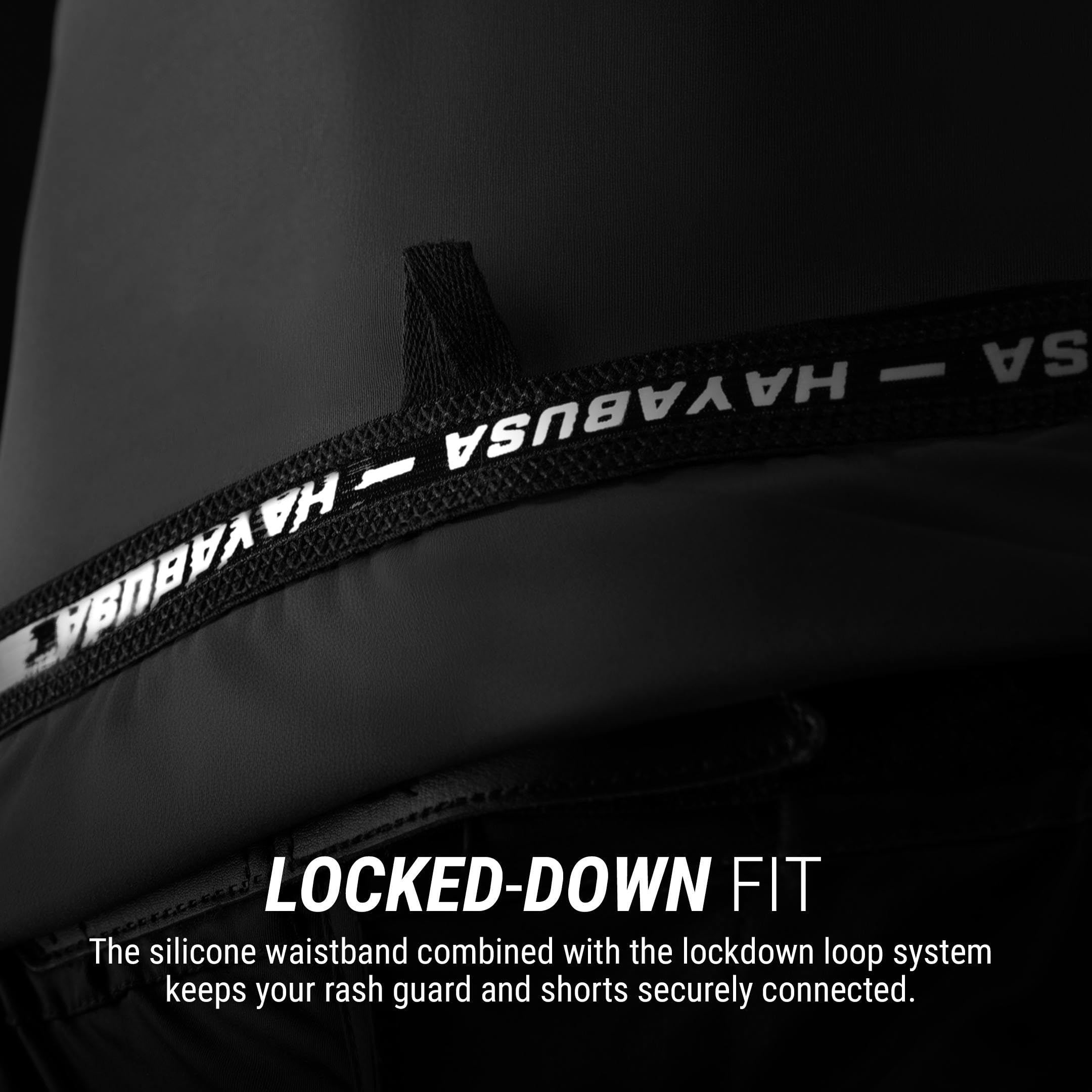 Locked-Down Fit: A silicone-fitted waistband combined with the lockdown loop system keeps your rash guard and shorts securely connected. No more shifting, bunching, or riding up — just a streamlined, distraction-free fit that holds through even the most intense scrambles.