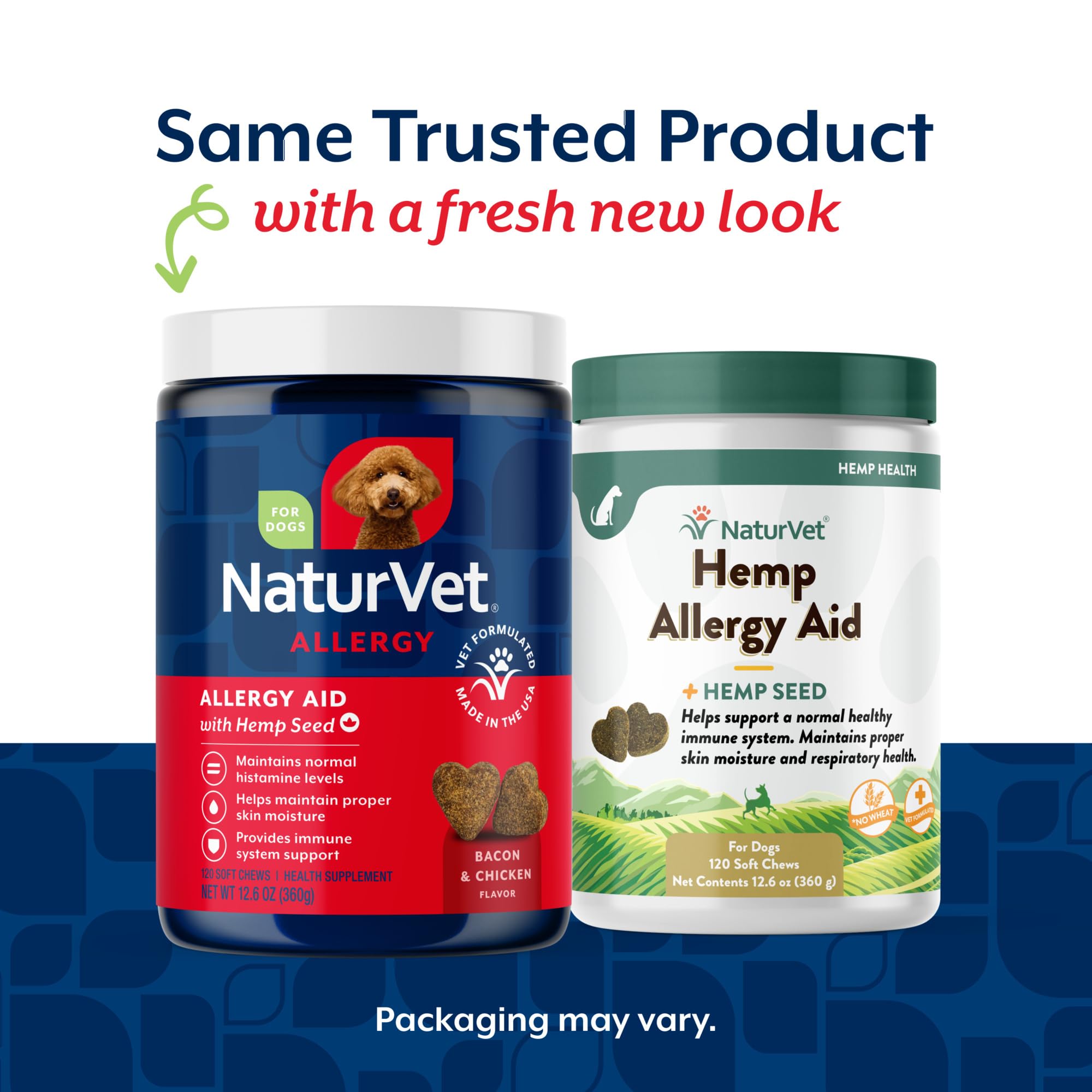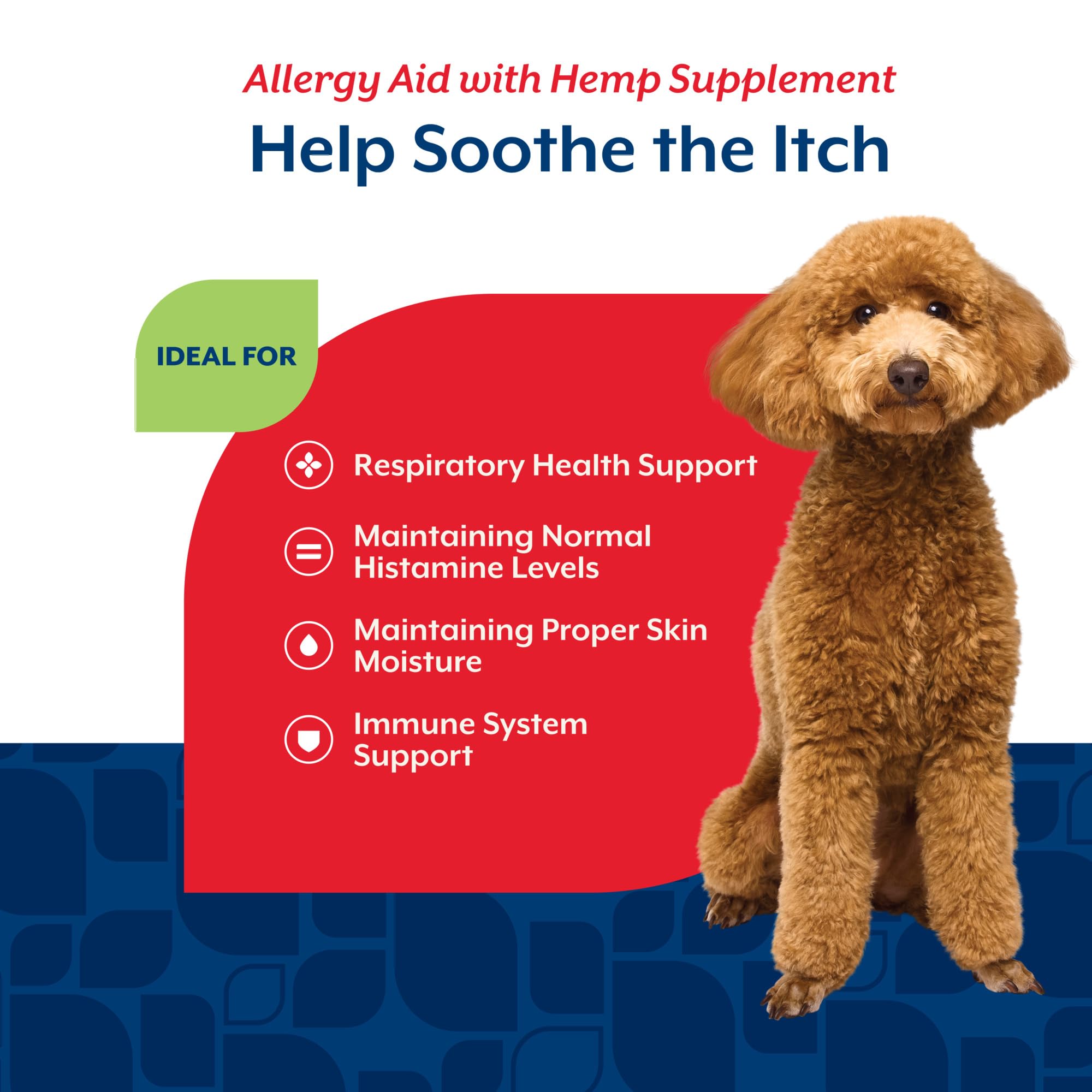 ALLERGY SUPPLEMENT FOR DOGS: Help your furry friend weather the changes in season with this NaturVet Hemp Allergy Aid Supplement for dogs. This dog supplement is rich in antioxidants, omegas, hemp seeds DHA and EPA to help boost your pet’s immune system.