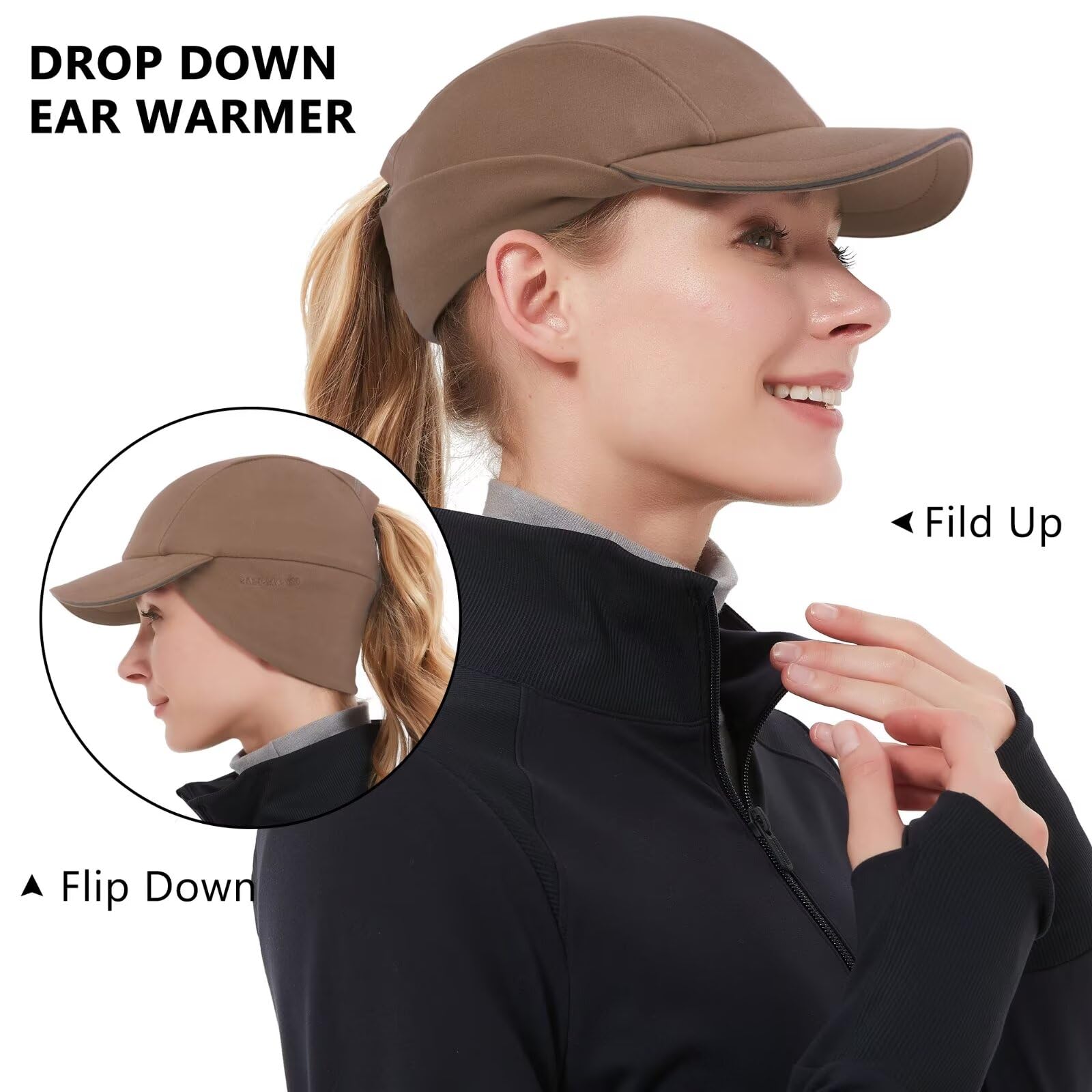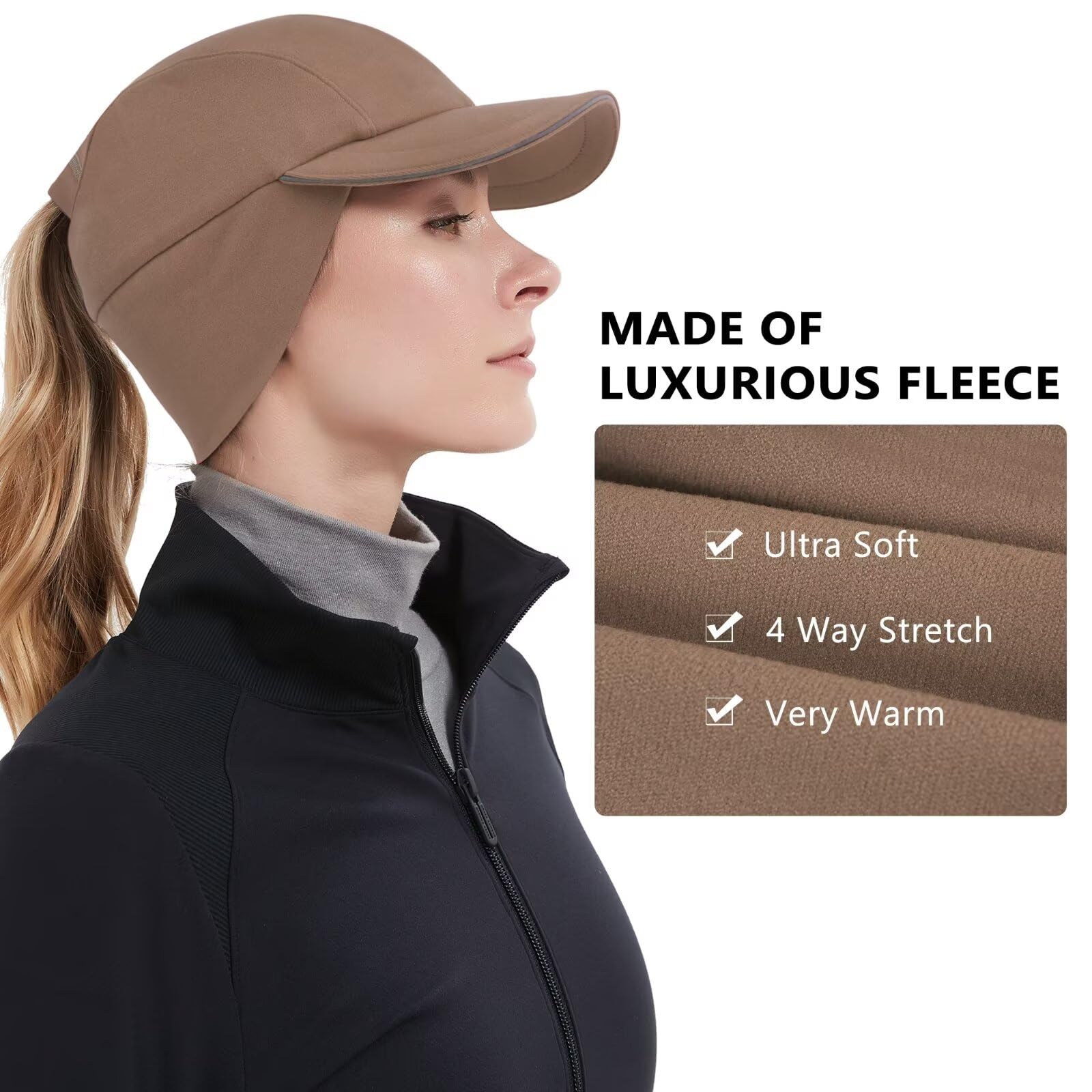 Versatile Winter Sport Hat: This winter hat is designed to fit the head shape of most women. The design is unstructured, with a 2.75"(7cm) thin brim matched with pull-down fleece ear protection. In winter, it can not only block the sun, but also warm your head, neck and ears. As your body warms up, simply flip the ear wamer up to help regulate body temperature.It is the best choice for winter exercise or running