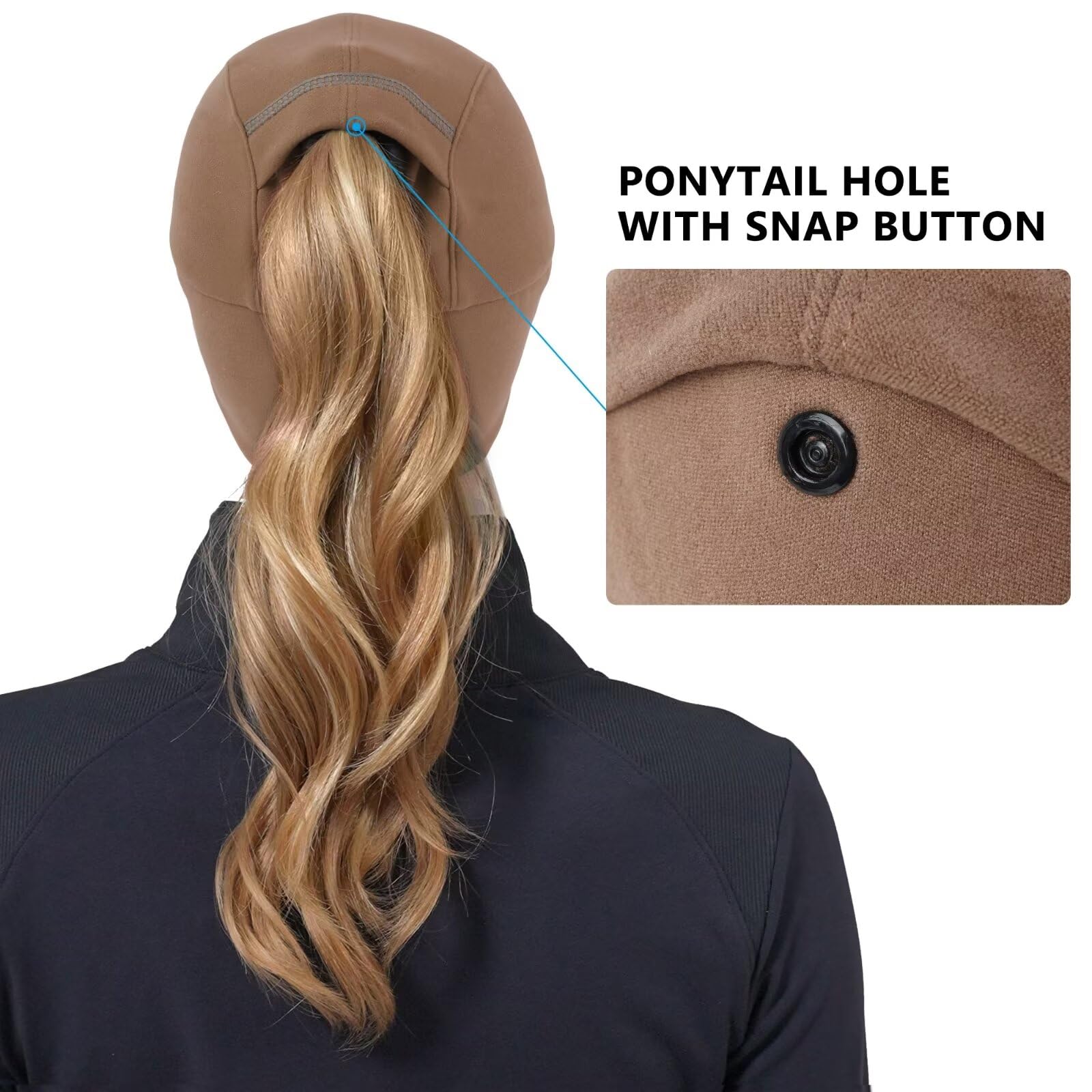 Reflective Ponytail Hat: The delicate ponytail opening can fit most ponytails and braids, does work best for high ponytails. If you don't tie a ponytail, you can snap the button inside for better warmth. Our reflective running cap has silver reflective stitching at the ponytail opening and a silver reflective accent around the visor cap’s brim, which can effectively improve the visibility in low light situations and improve safety