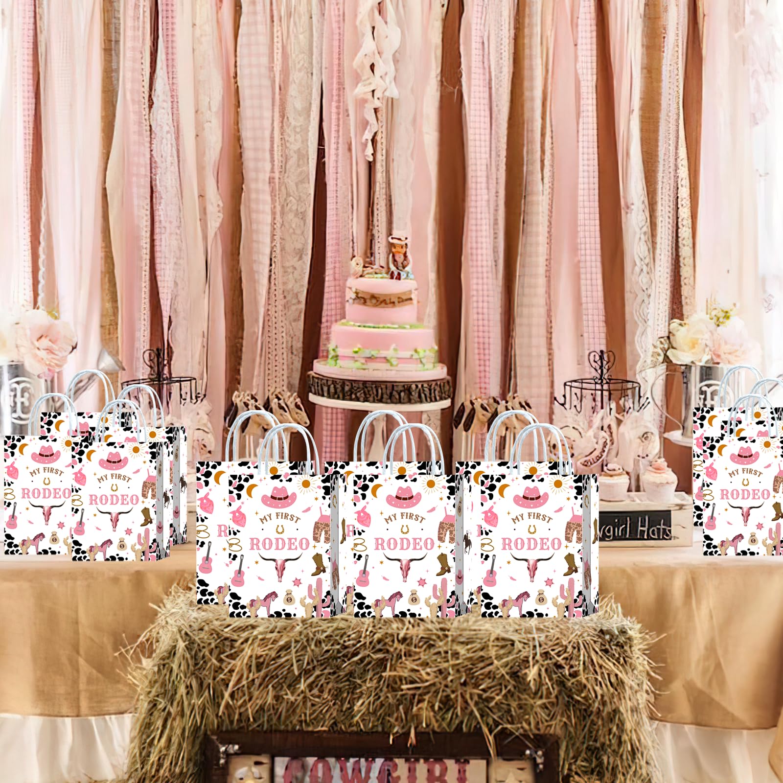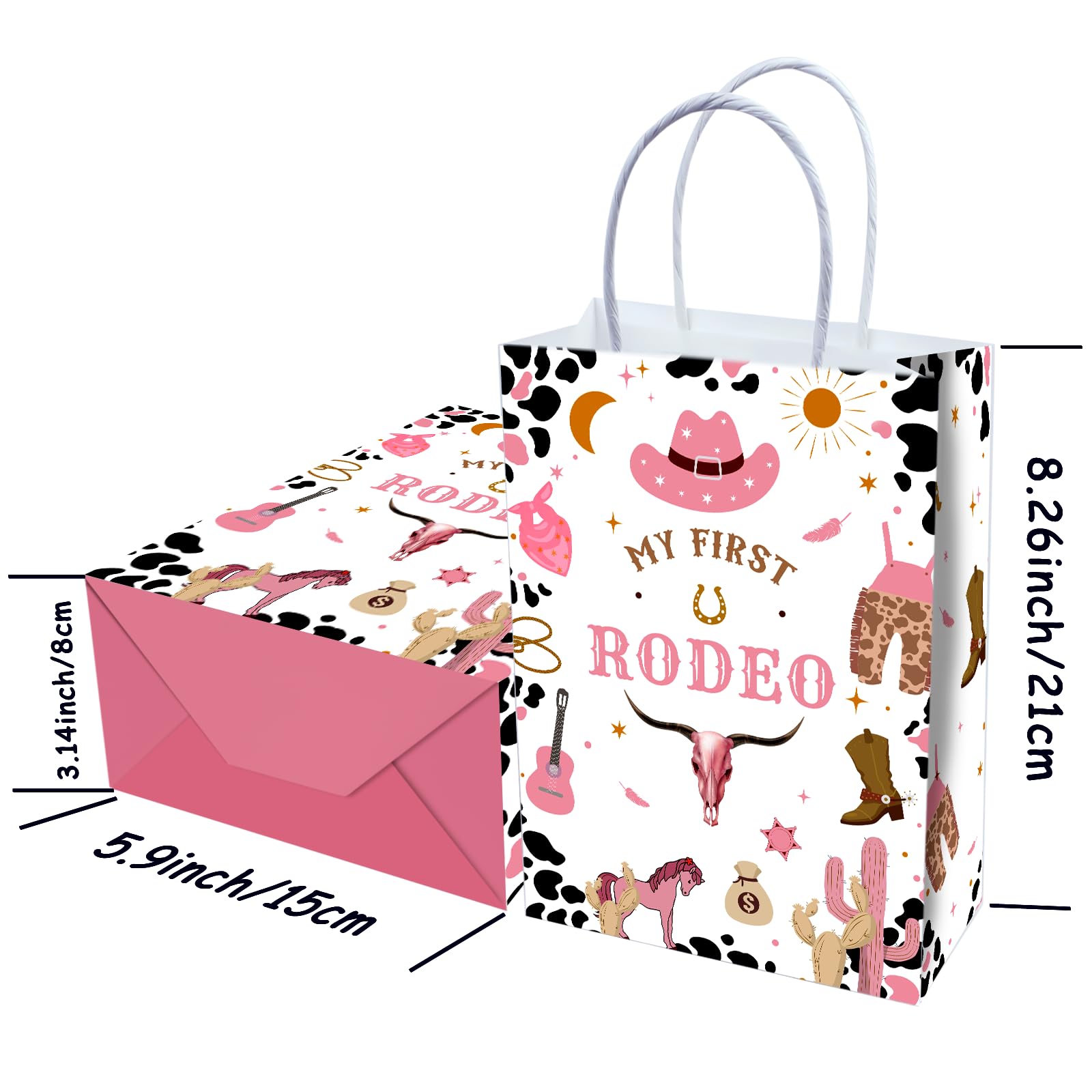 Wild West Birthday 1st Birthday Goodie Bags content:you will get 16 pieces of My First Rodeo print paper Gift bags with handles,each FIRST RODEO Birthday Snacks bag is 8.3 x 5.9 x 3.1 inches/21 x 15 x 8 cm,a suitable size to Cowgirl 1st Birthday Party