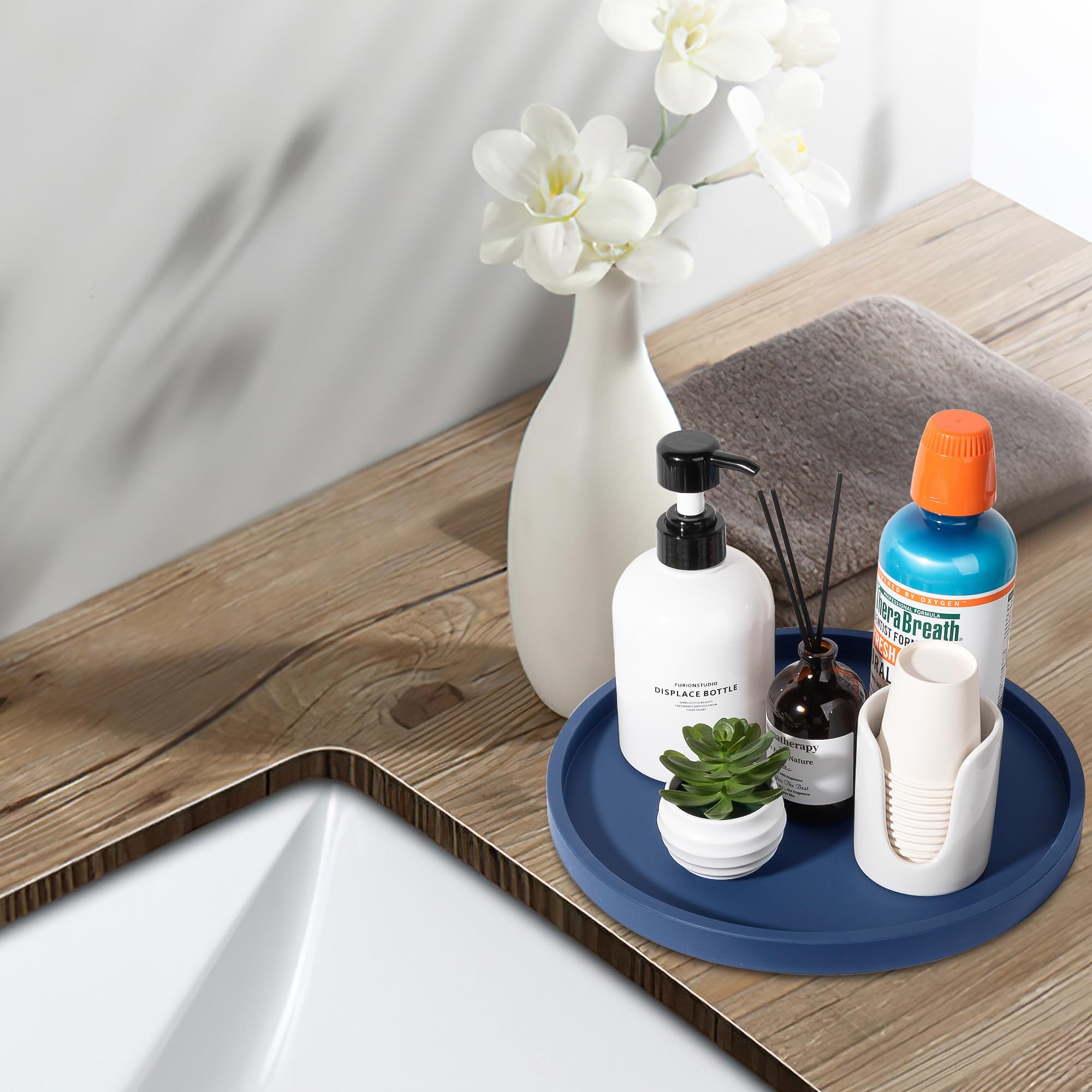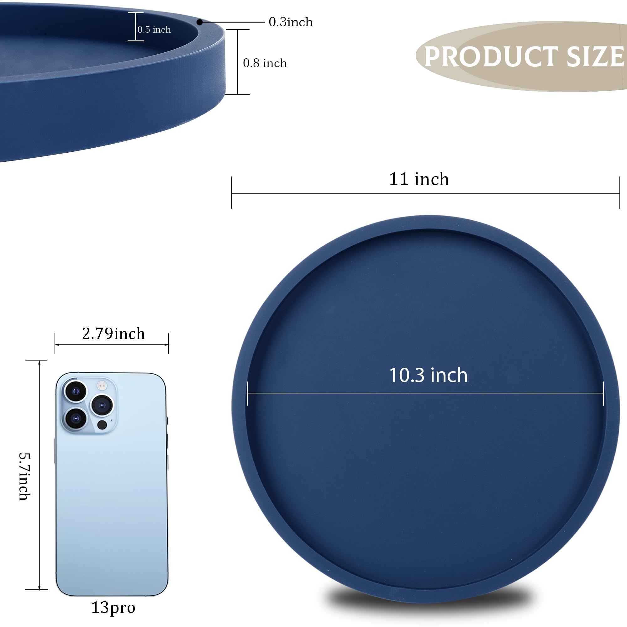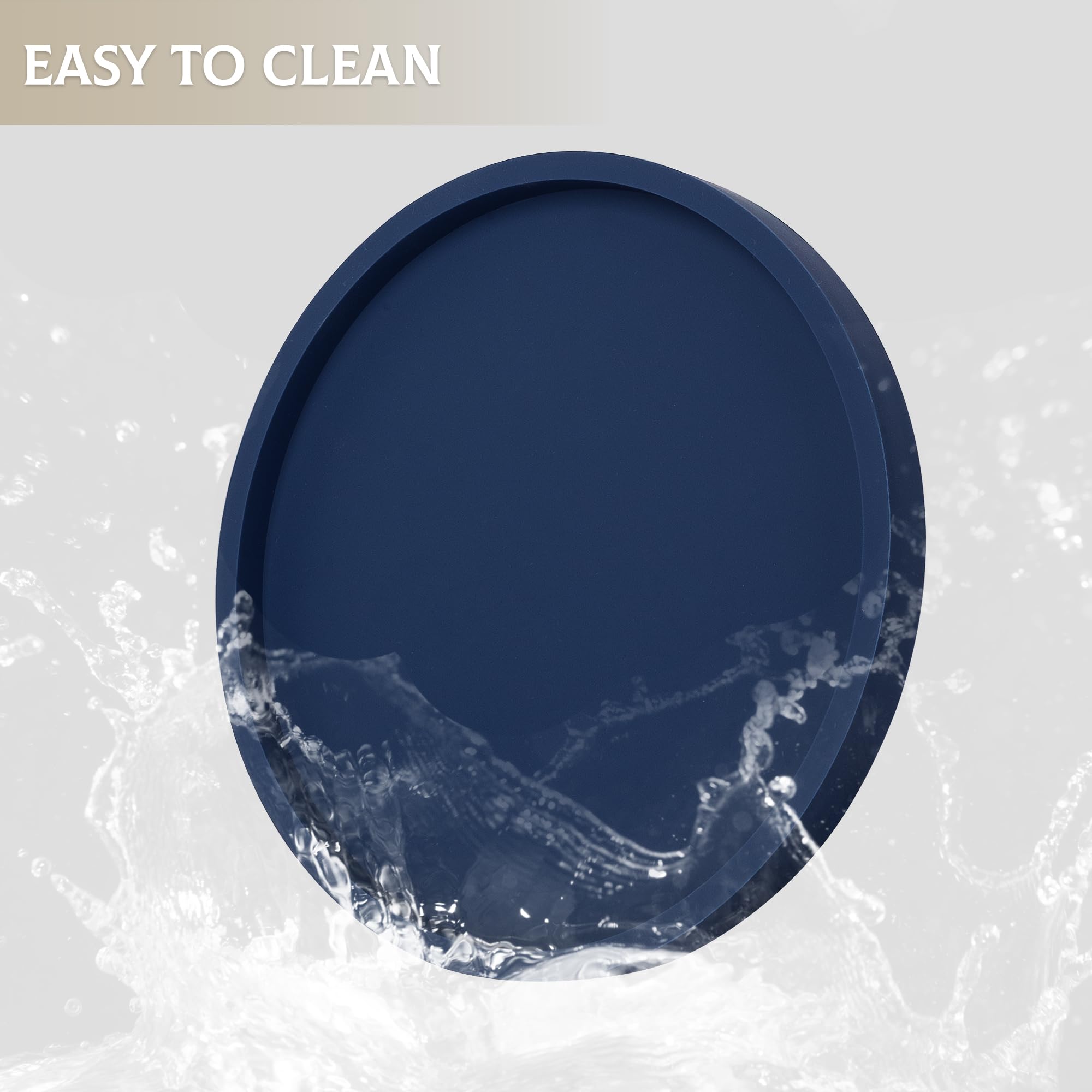 Solid Construction: Made of thickened silicone material, sturdy and robust. With smooth edges and flat bottom, the round perfume tray is non-slip, shatterproof and scratch resistant, which can better protect your granite countertops.