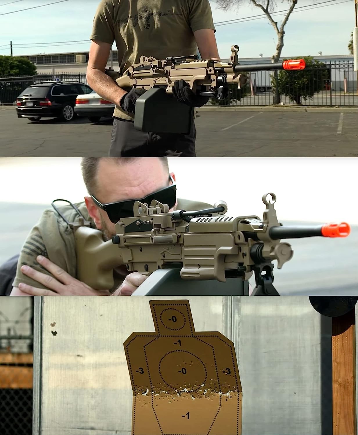 Length: 1100mm Weight (w/o mag): ~3500g Inner Barrol: 509 Mag: 300rd M4 Style AEG mag included. Compatible with A&K style Box Mags Thread Direction: 14mm Negative Gearbox: Version 2 (specs in description) Motor: Long Type Fire Modes: Full-Auto, Safety Package Includes: Gun, 300rd M4 Mag, Bipod Battery: recommended (Battery not included. Wired to rear w/ Small Tam. Connector) Hopup: Yes, Adjustable Gearbox Specifications: + Aluminum alloy gearbox shell + 8mm metal bushings + Sintered steel 18:1 gear set + Plastic delayer chip for optimized Full-Auto cycling + Aluminum cylinder + Polycarbonate tappet plate + Polycarbonate piston + High compression polycarbonate p-head + High compression polycarbonate c-head + Polycarbonate lightweight nozzle + Quick-change system