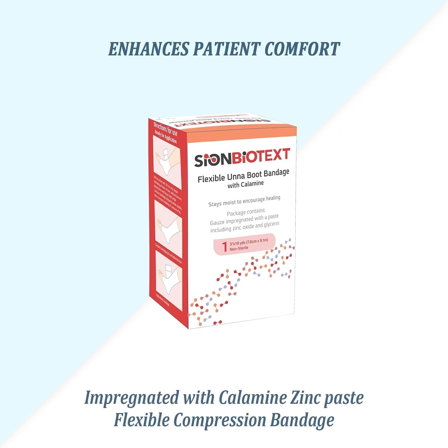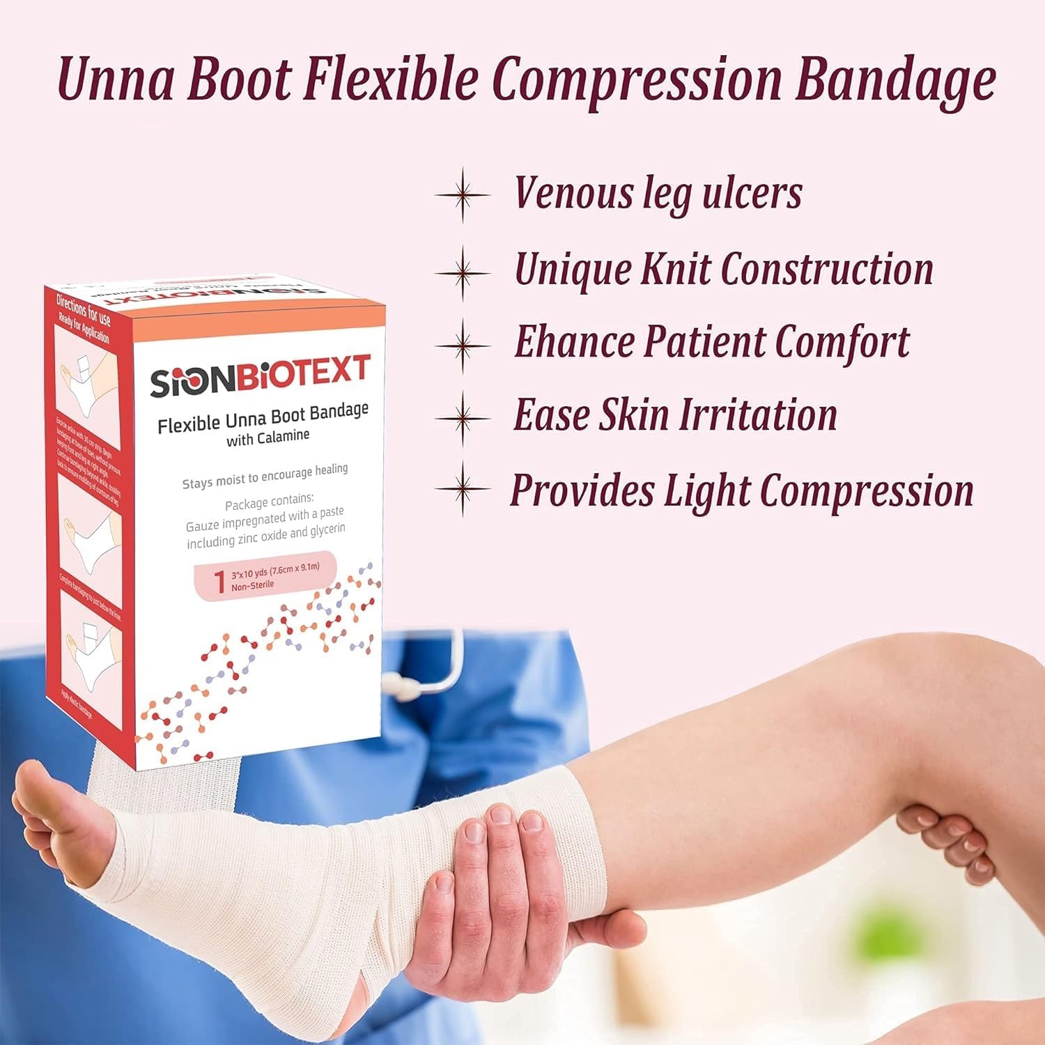 UNIFORM DISTRIBUTION OF PASTE - Sion Biotext Unna Boot Bandages are infused with zinc oxide paste and calamine. Unique knit construction allows for a more uniform distribution of paste, effective wound care supplies for ulcers