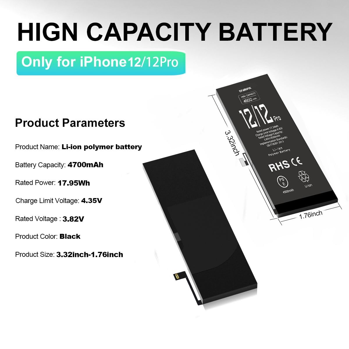🎐【Warranty & Customer Service】: All iPhone 12/12 PRO battery replacements are strictly QC double tested and 100% in good condition before shipping. We believe in our products and offer one year warranty service for non man-made quality issue. We recommend watching the manual and video before installation to avoid damage. If there is any issue with the battery or you have any problem, please contact us by email directly.