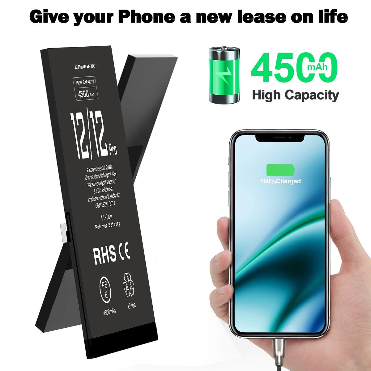 🔋【4500mAh 0 Cycle Powerful Battery】 4500mAh high capacity, more power than original standard battery, same size but more capacity and more power life. This iPhone 12/12 PRO battery prolongs the phone service time, you can use the high capacity iPhone 12/12 PRO battery directly without bothering about running out of power and shut down some apps all the time. Bring your iPhone 12/12 PRO battery’s life back to glory and save money.