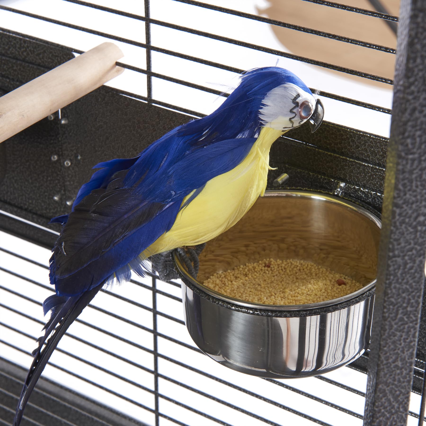 【Thoughtful and handy birdcage set】 For your convenience, this bird cage comes with 4 stainless steel bowls, 2 wooden dowels, and a rope boing with a ring bell.
