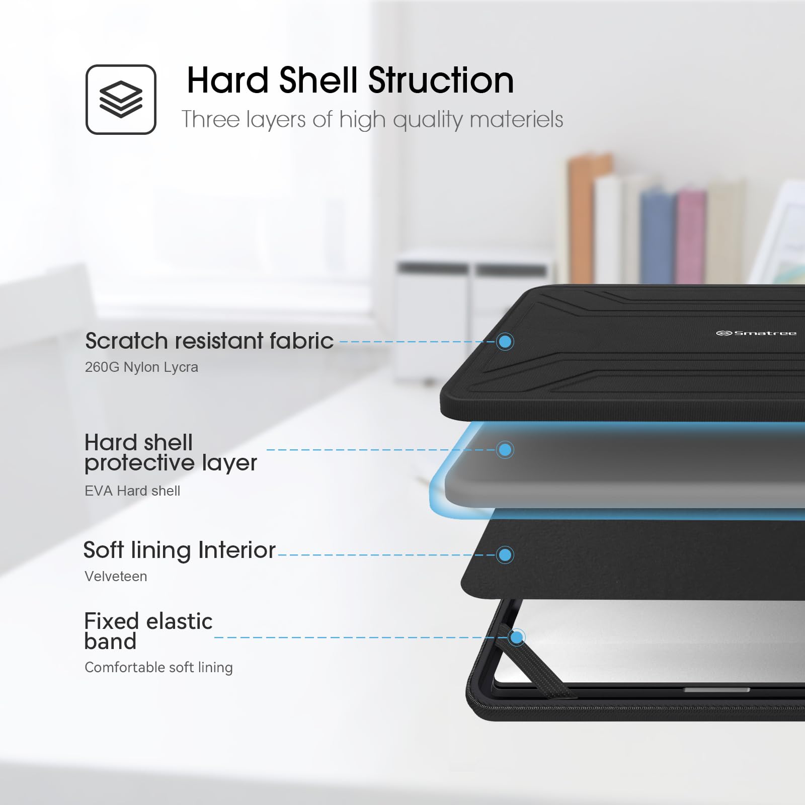Durable & Waterproof: compared with other soft laptop sleeve, Smatree case designed with One-step molding process, provide 360 degree protection for your laptops. The sleeve bag is made of 600d EVA nylon, which is waterproof and Shockproof. High-quality materials are more durable