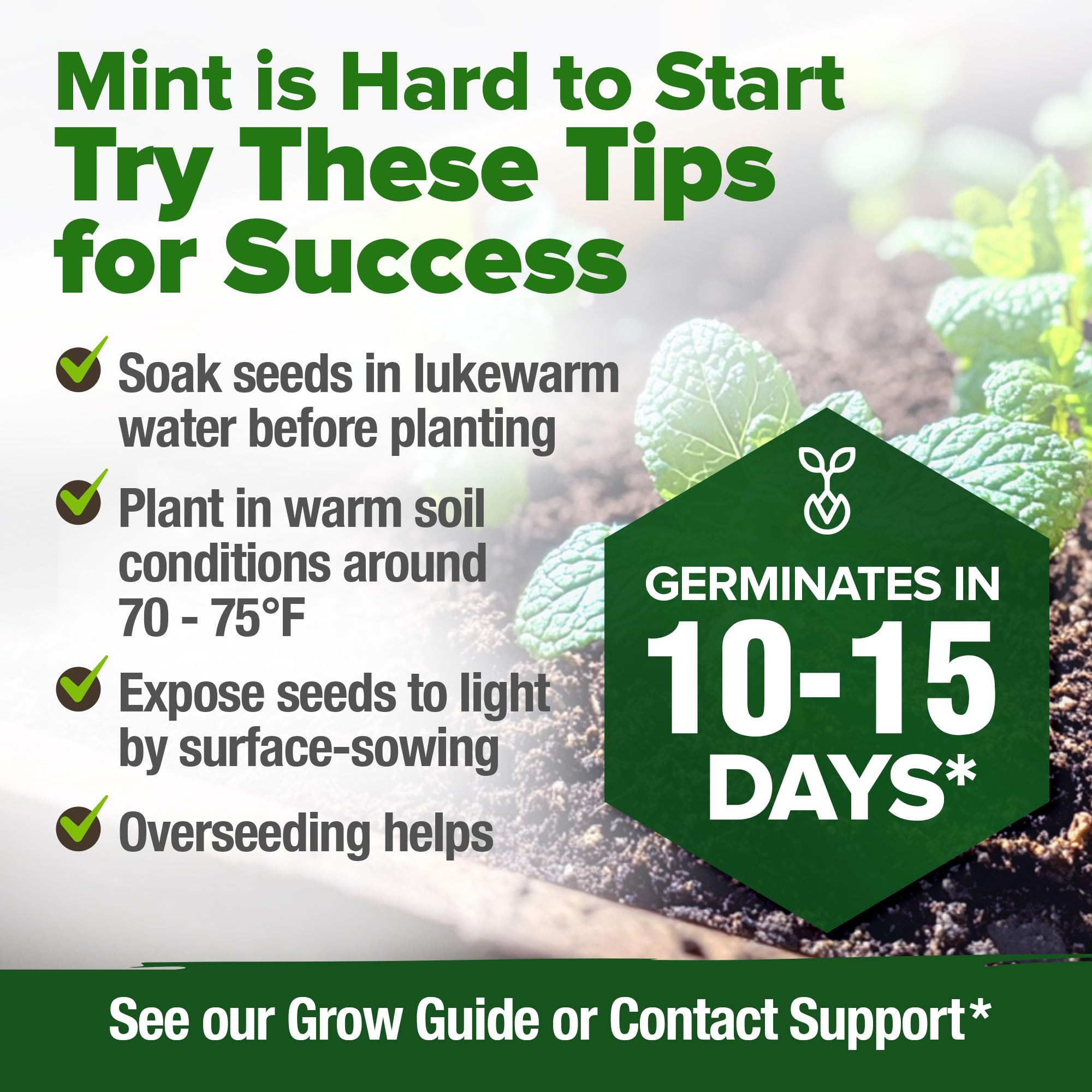 FAST GERMINATION FOR QUICK RESULTS - Experience the joy of fast-growing mint seeds! Our seeds boast an 85-90% germination rate, ensuring quick and efficient herb growth, perfect for your herb seeds for planting outdoors.