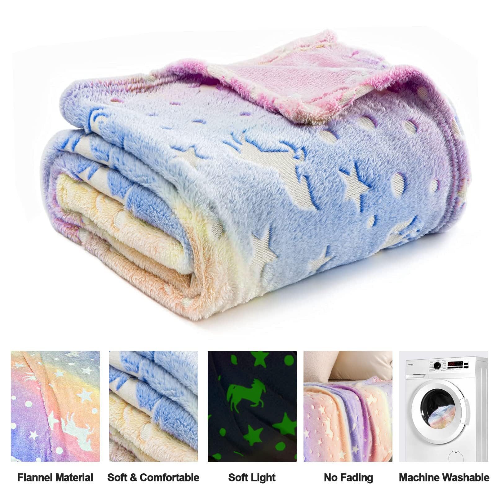 Unicorns Gifts for Girls: When you're struggling for a holiday or birthday gift, glow in the dark blanket will surprise children, this unicorn blanket is the perfect choice.