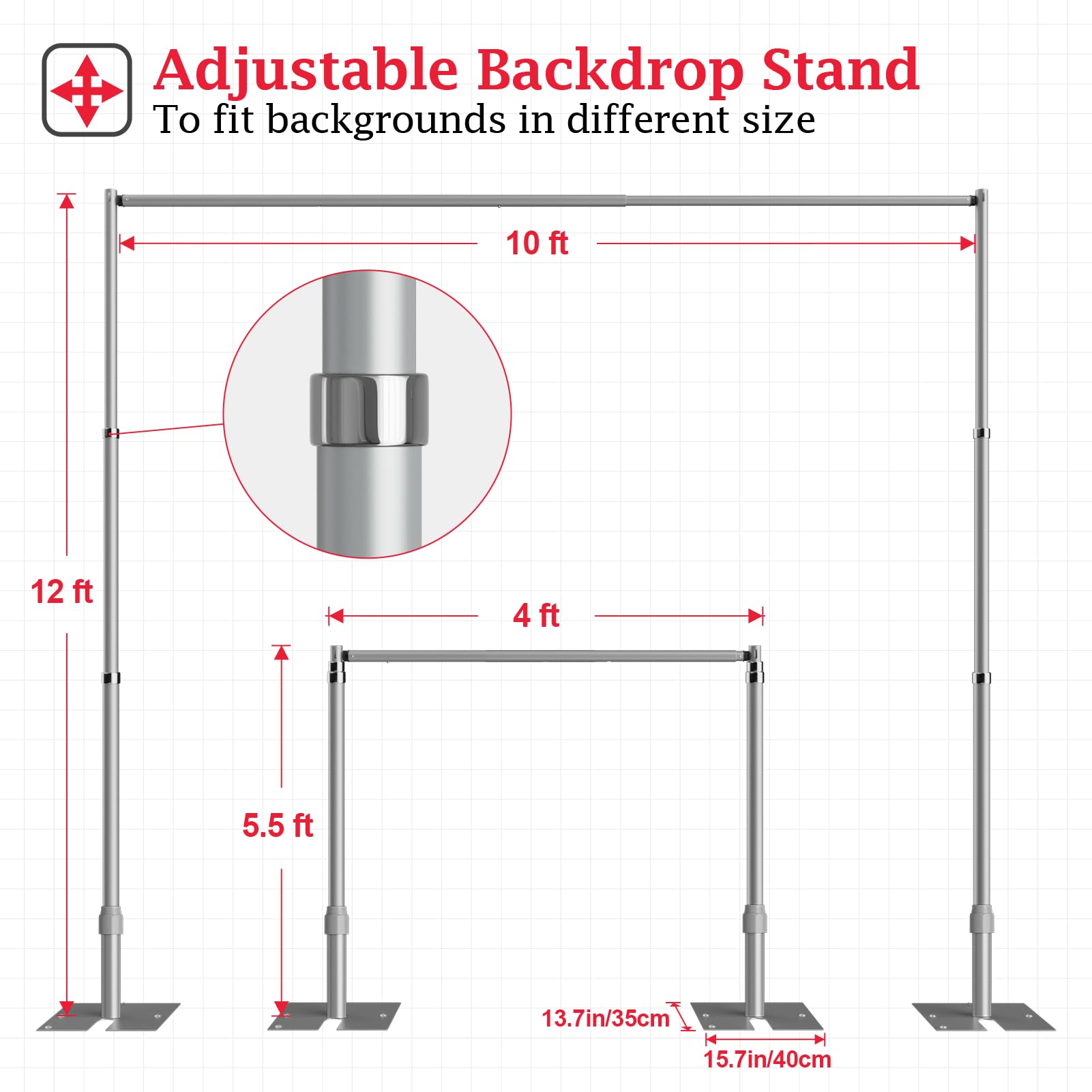 【Sturdy Photo Background Stand 】12x10 ft heavy duty backdrop stand. Aluminum and steel framework provides maximum stability and professional durability,Sturdy base legs provide sturdy balanced support for safety and reliability.