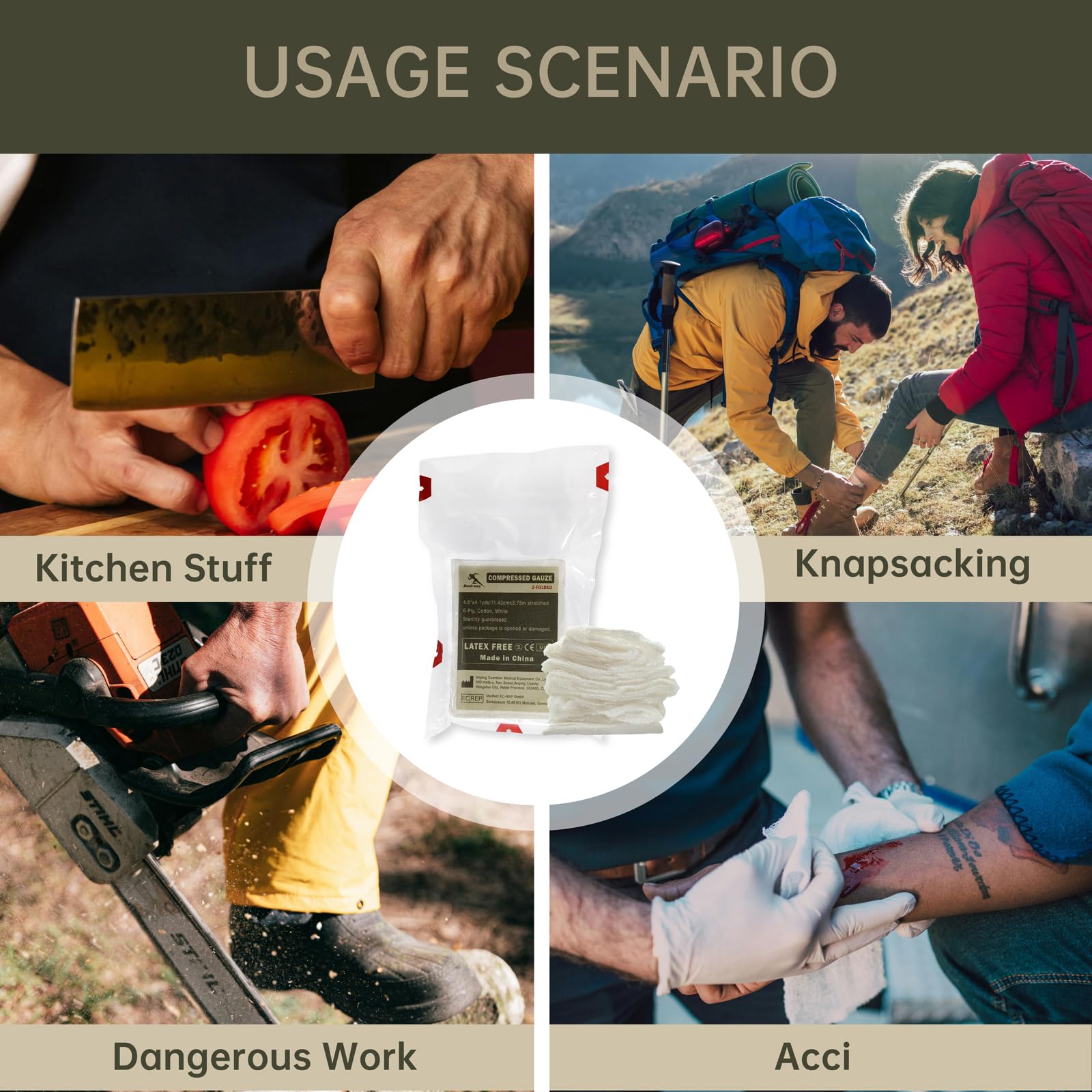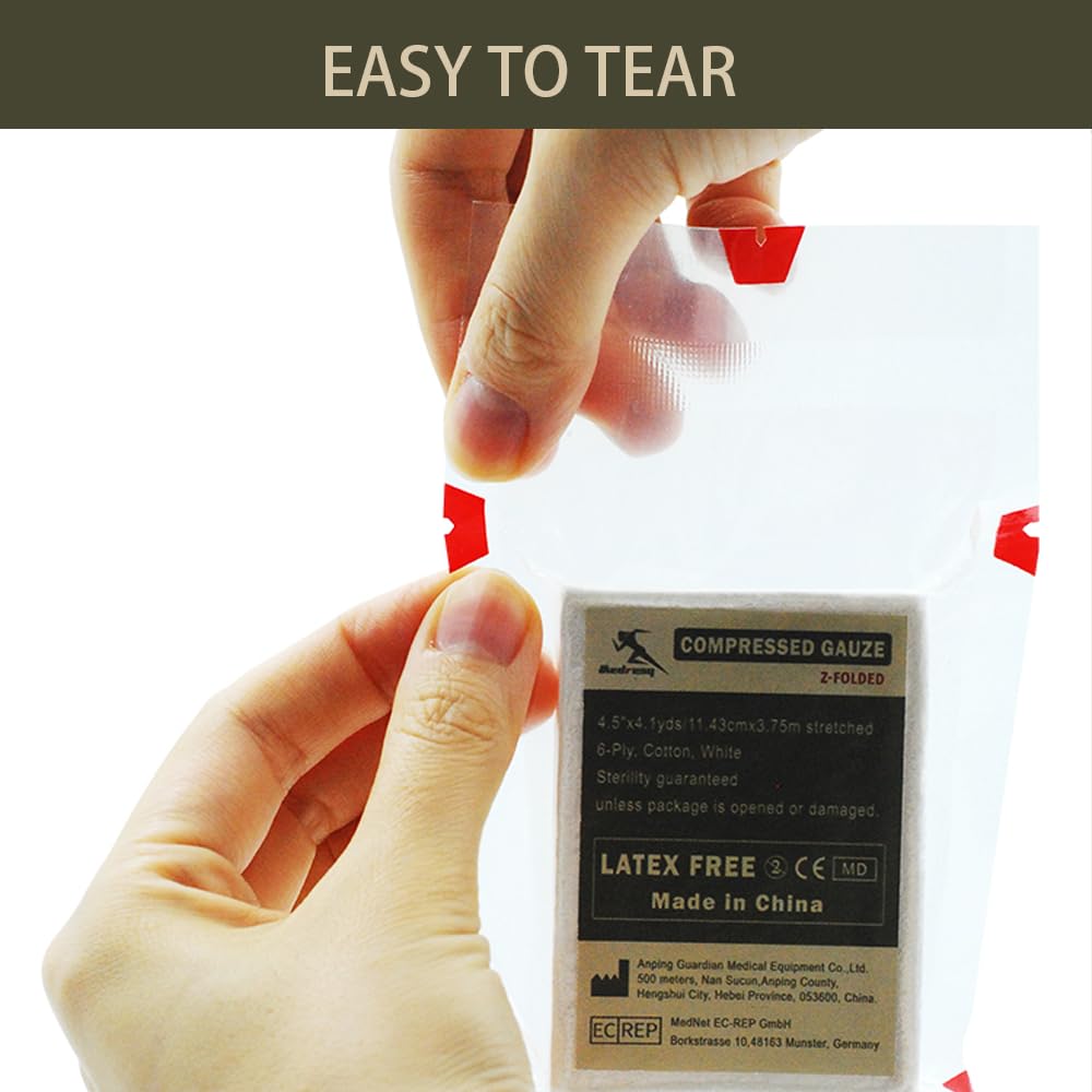 【VERSATILE USE】: We compress gauze is suitable for various first aid applications. Whether you're a military professional, outdoor enthusiast, or simply looking to enhance your emergency preparedness, this compress gauze is a must-have addition to your medical supplies.