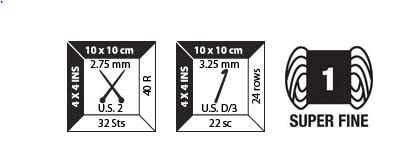 Recommended Knitting Needle: 2.75 mm; Recommended Crochet Hook: 3.25 mm