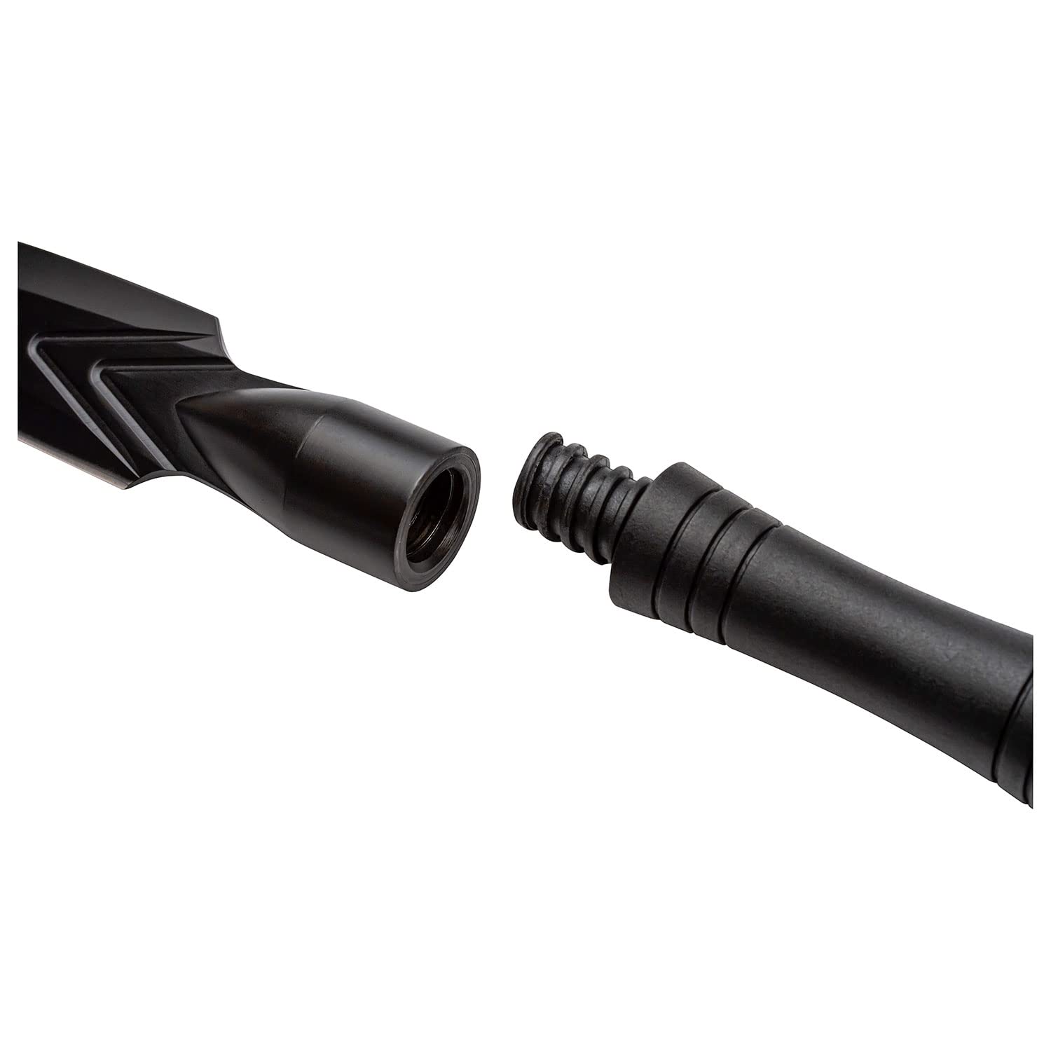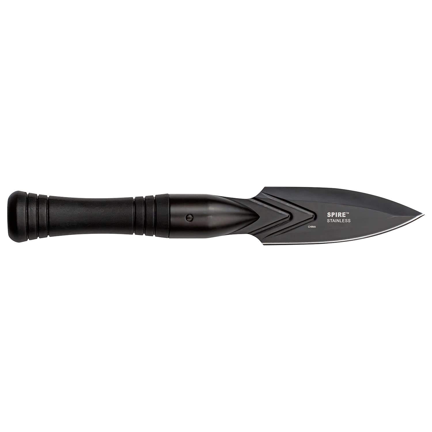 SPECIAL FEATURES: Spear, Black Injection Molded Nylon Fiber Handle with Universal Thread for Broomstick or Paint Pole, Black Nylon Sheath. *Note the spear is only sharpened on one side of the blade.