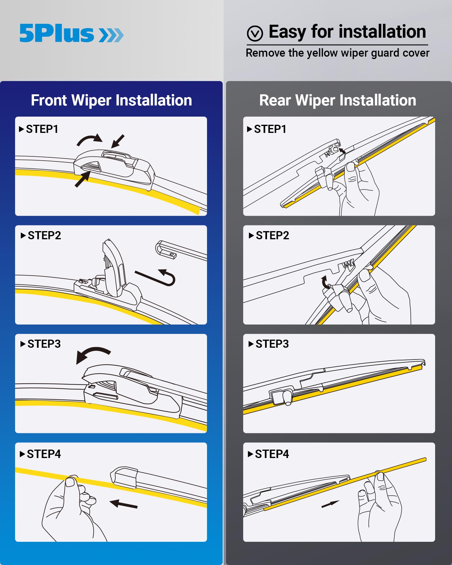 All-Season Wiper】Good weather resistance allows this wiper to operate normally under many extreme conditions, such as dust, ice and snow, fog and rain. OEM grade silicone, springs, adapters, clips, and spoilers make 5 PLUS wipers 200% better in quality than regular OEM, which also means we have a longer lifespan.