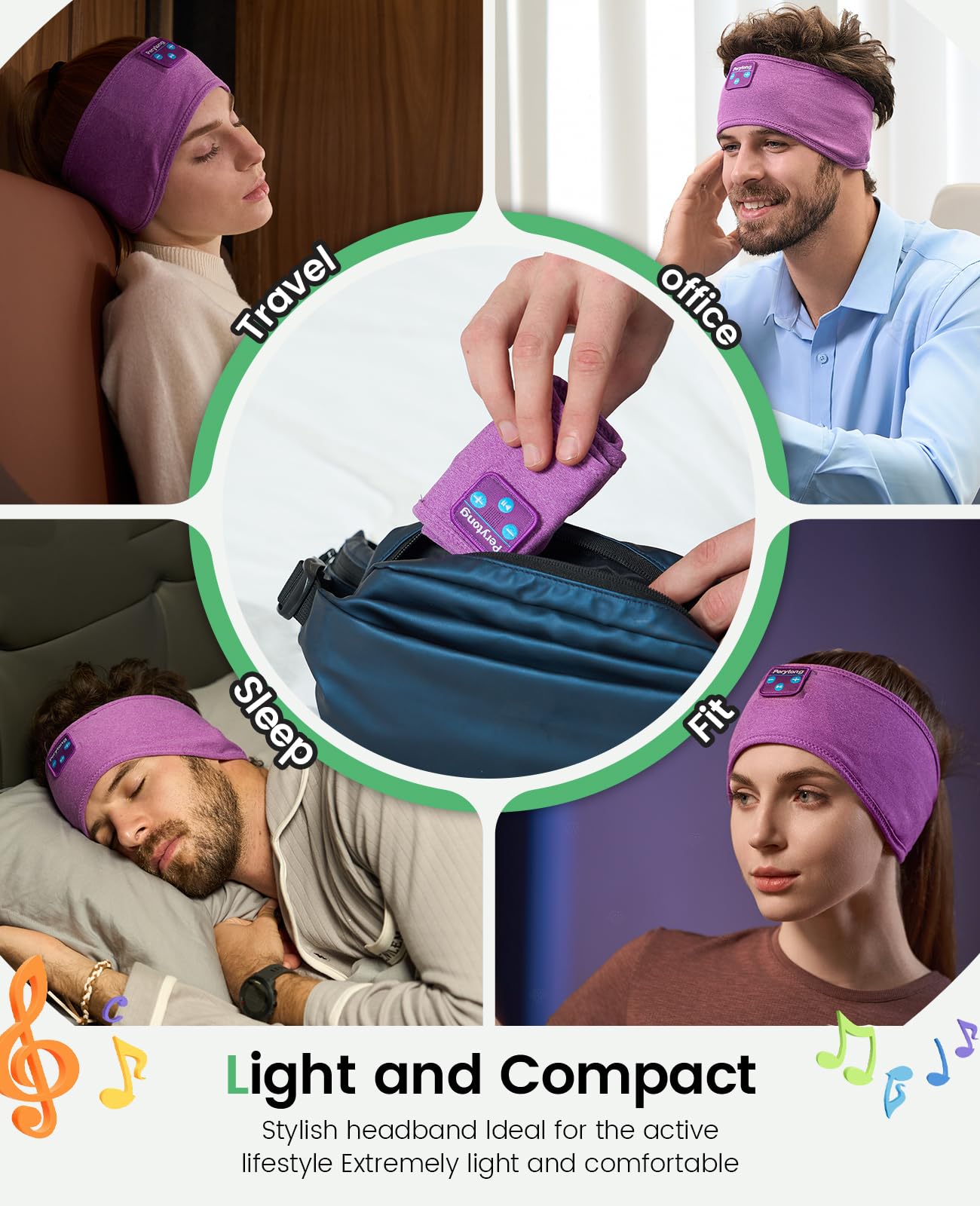 ULTRA-THIN HEADPHONES :With the headphones positioned in the middle so sleep headphones won't press against the ear, making Bluetooth headband a perfect replacement for traditional headphones. Especially suitable for lying down and side sleeping, our sleep headphones won't easily slip off like earplugs and other types of headphones, and won't cause discomfort or pain for side sleepers. Wireless sleeping headphones can also help to reduce noise