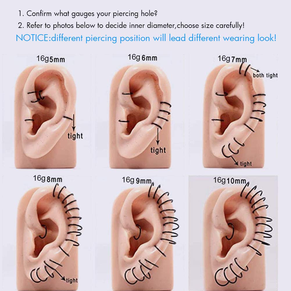 ❤COMMON SIZE❤:Gauge: 16G=1.2mm, Inner diameter:5mm, this is the more suitable and comfortable size for conch /orbital conch earring and Lobe earring